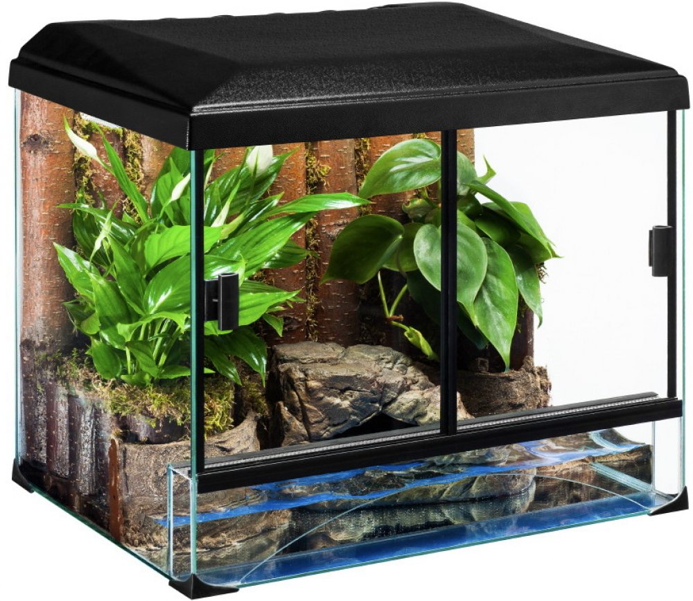 Profesionály navržená terarijní sestava je ideálním příbytkem pro plazy a obojživejníky, jako jsou želvy, krabi, hadi a další. Mezi standardní výbavu mj. patří odvětrávaný kryt, dekorace, vnitřní filtr a bohaté příslušenství. Přední posuvné dvěře umožňují snadný přístup, optimální klima zabezpečuje několikastupňový systém odvětrávání. Zadní stěna terária je vybavena průvlakem pro vedení potřebné kabeláže.