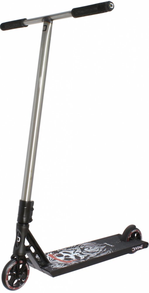 Zbrusu nová street koloběžka pro pokročilé jezdce od české firmy Divine. Hlavní předností této koloběžky je její velikost. Koloběžka má 700 mm řídítka, 6,5" (165 mm) širokou desku a 120 mm kolečka. Řídítka jsou vyrobená z premiové, odlehčené oceli, díky tomu barspiny a další triky půjdou o dost snáz. Deska má krk z jednoho kusu. Díky tomu je o dost pevnější. Rozměry desky jsou 560x165 mm. Šířka de...