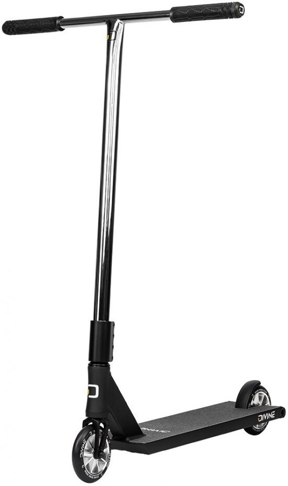 Chcete zlepšit své dovednosti na ulici? Hledáte kvalitní a odolný freestylový skútr za skvělou cenu? Divine Nyx je přesně to, co potřebujete. Tento skútr je určen pro pokročilé jezdce a nabízí vše, co potřebujete ke zlepšení svých dovedností. Celý skútr váží 4,4 kg, což je vzhledem k jeho velikosti skvělý poměr. Koloběžka je vybavena ocelovými řídítky ve tvaru písmene T. .Na řídítkách jsou namonto...