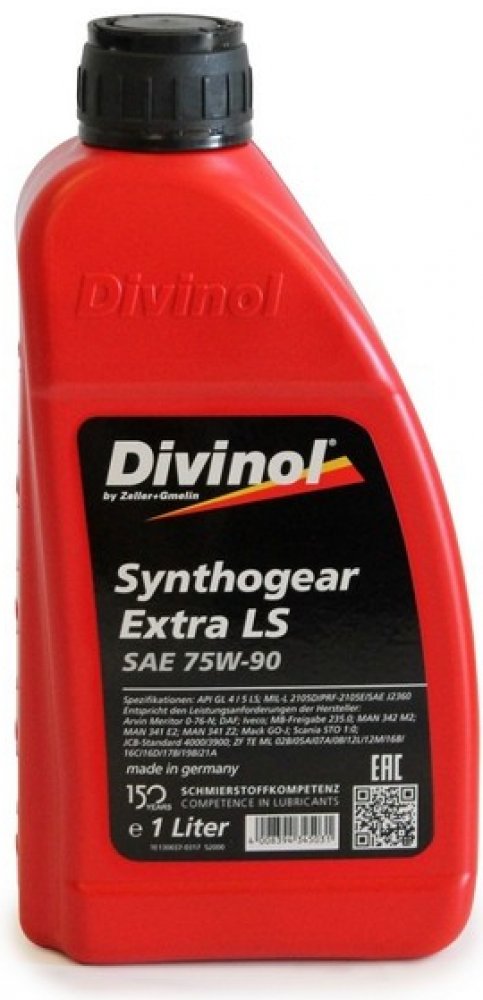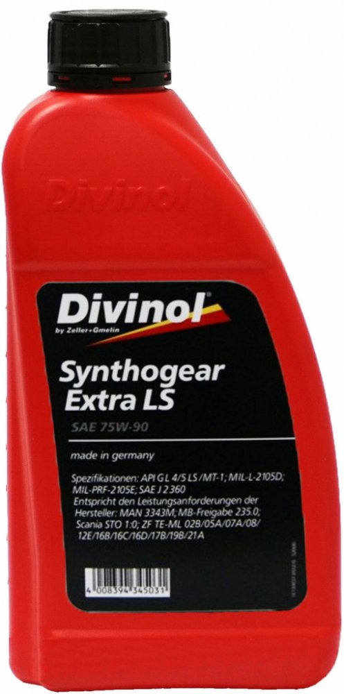 DIVINOL SYNTHOGEAR EXTRA LS SAE 75 W-90 Syntetický vícestupňový převodový olej založený na vysoce kvalitních základových olejích. LS - specifické dodatky k požadavkům na zamykání resp. uzávěrku diferenciálu. Má extrémně široké rozmezí teplot a je proto doporučen pro použití v extrémně nízkých a vysokých teplotách.