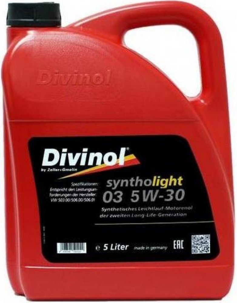 DIVINOL SYNTHOLIGHT III 5W-30 je vysoce výkonný motorový olej pro lehký chod na bázi nejnovější technologie. Je to olej třetí generace životnosti. Tímto motorovým olejem mohou být nyní plněny všechny motory nezávisle na typu konstrukce. Díky jeho dlouhé životnosti jsou zaručeny intervaly výměny oleje až po 50 000 km, popř. 2 letech. Výrobek poskytuje optimální mazání po celou dobu intervalu údržby. Nízká HTHS viskozita umožňuje maximální úsporu pohonných hmot a přispívá tím k ochraně životního prostředí.