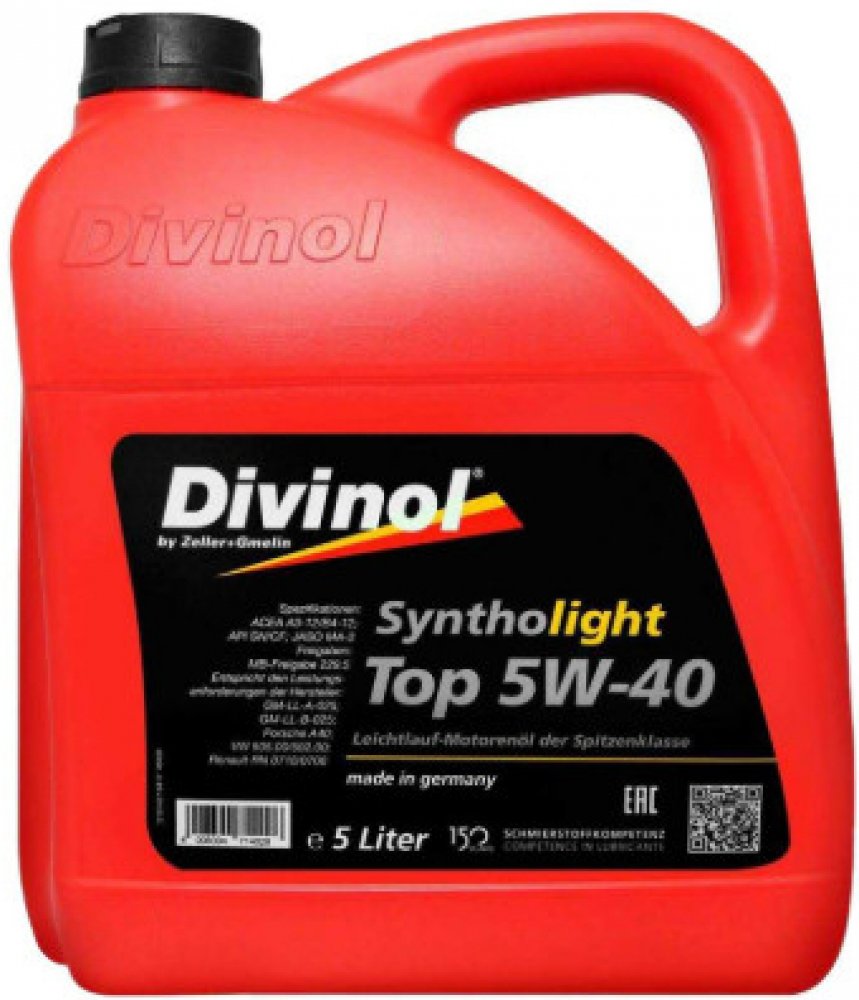 Výkonná ochrana motoru pro náročný provoz Olej motorový Divinol Syntholight Top 5W-40 5l je prémiový syntetický olej určený pro moderní benzínové a naftové motory osobních a lehkých užitkových vozidel. Zajišťuje rychlé mazání motoru při studeném startu a poskytuje stabilní ochranu i při vysokých teplotách a plném zatížení. Je vyvinut pro uživatele kteří vyžadují maximální výkon dlouhou životnost a plynulý chod motoru za všech podmínek. Certifikace předních výrobců automobilů Tento olej splňuje širokou škálu přísných požadavků výrobců a je vhodný pro motory vyžadující vysokou tepelnou stabilitu a odolnost proti opotřebení. Odpovídá specifikacím BMW Longlife-01 (2019) GM-LL-A-025 GM-LL-B-025 Porsche A40 VW 505.00 / 502.00 Renault RN 0700 / 0710 Fiat 9.55535-M2 MB 226.5 PSA B71 2296 MB-Approval 229.5 ACEA A3/B4 API SP/CF. Díky těmto certifikacím je ideální pro široké spektrum evropských vozů které kladou důraz na dynamiku a spolehlivost. Stabilní výkon a dlouhá životnost motoru Divinol Syntholight Top 5W-40 poskytuje vynikající ochranu proti opotřebení usazeninám a oxidaci oleje i při náročném provozu. Udržuje motor čistý zajišťuje plynulý chod a pomáhá prodloužit životnost motorových komponentů. Je doporučen pro řidiče kteří očekávají vysokou odolnost oleje při sportovní jízdě i dlouhých dálničních trasách. .