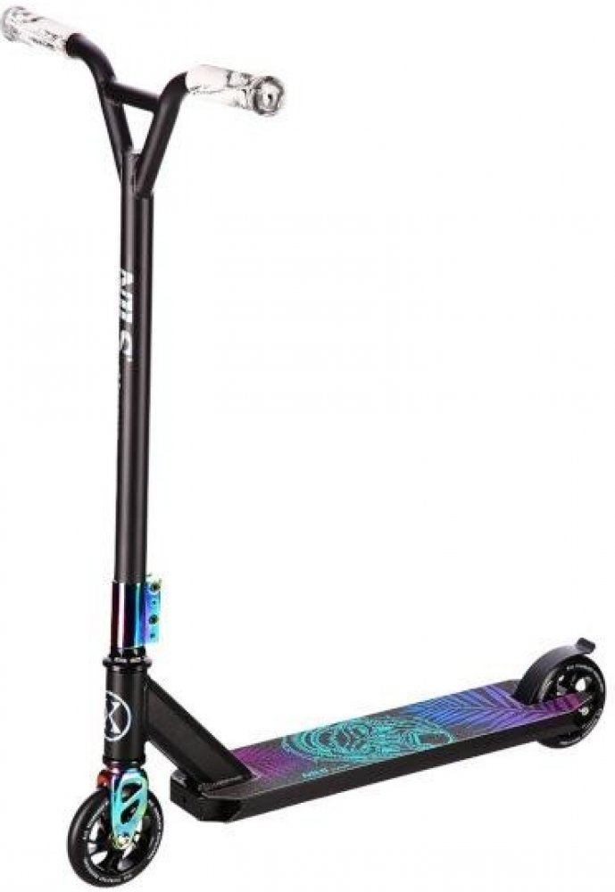 Freestylová koloběžka nemá žádný skládací mechanismus ani systém nastavení výšky řídítek - tyto typy řešení by mohly oslabit celou konstrukci, což samozřejmě není žádoucí u produktu, kde je odolnost zásadní.