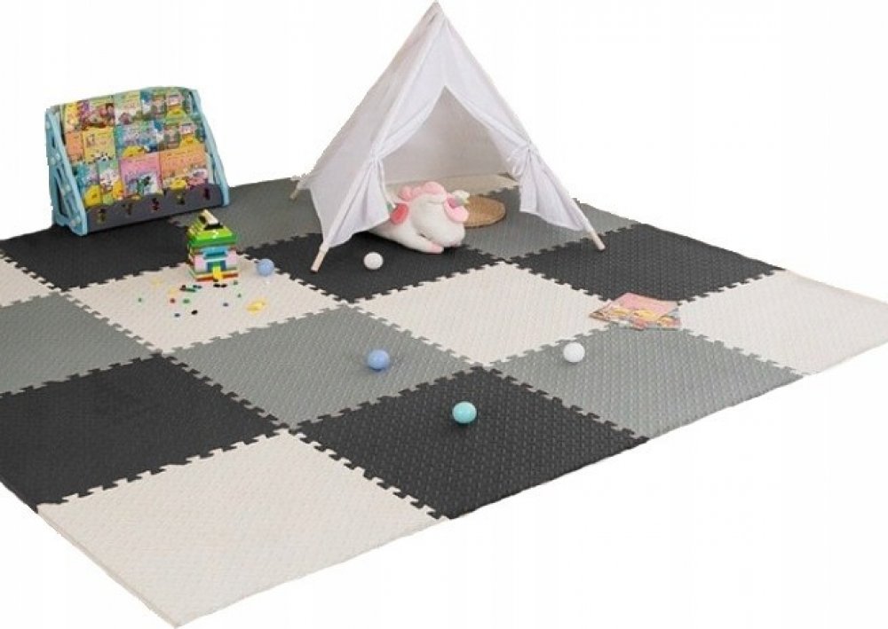 Pěnové puzzle MAXI 16 ks 120x120x1 cm krémovo-šedo-černé