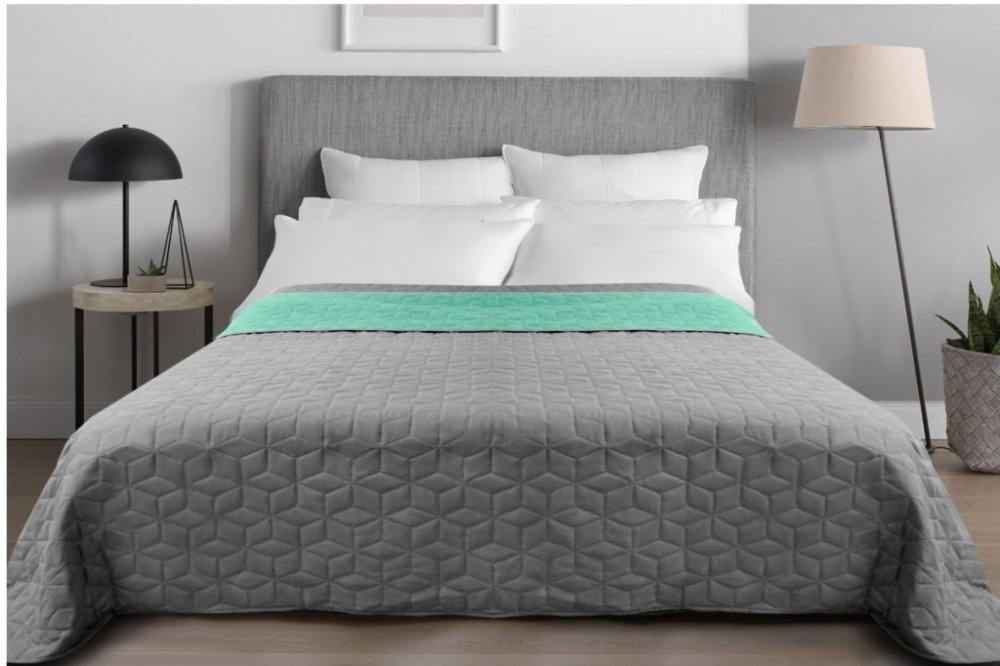 Divio přehoz na postel oboustranný DIAMANTE mátová-světle šedá 220 x 240 cm