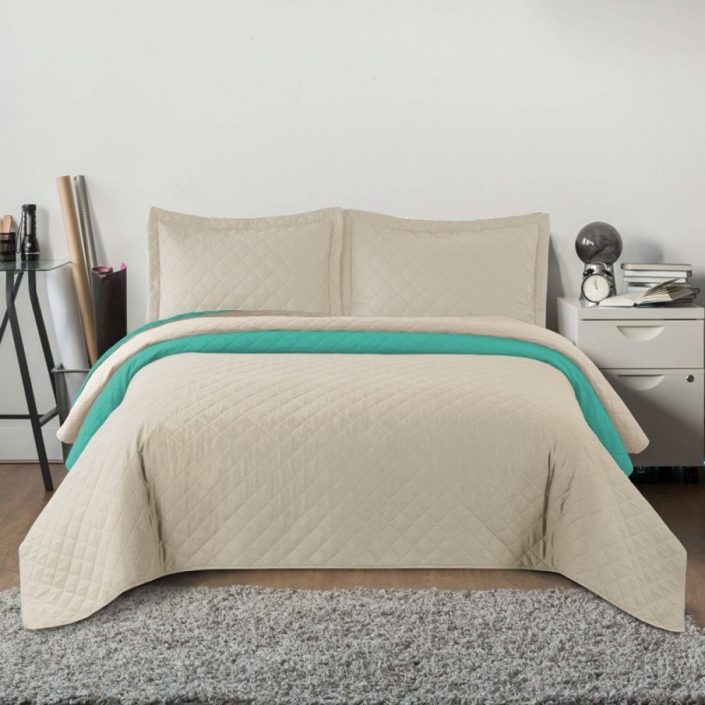 Divio přehoz na postel oboustranný INEZ béžovo-mátová 220 x 240 cm