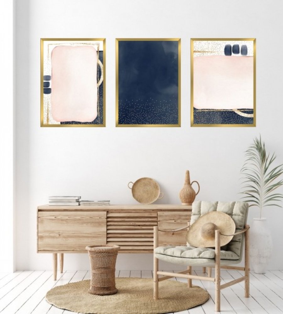 Všechny rámy v naší nabídce již rovněž obsahují 3 mm podkladovou HDF desku, 1 mm lesklé plexisklo. Je to moderní triptych. Sada obsahuje 3 ks.