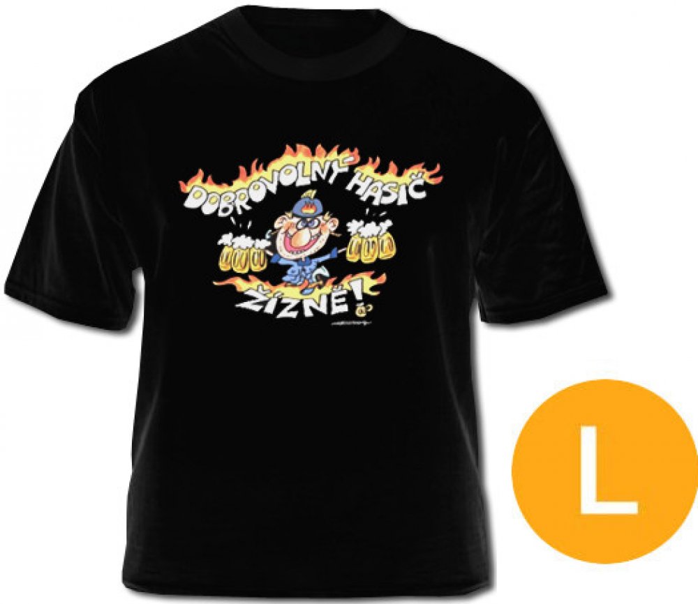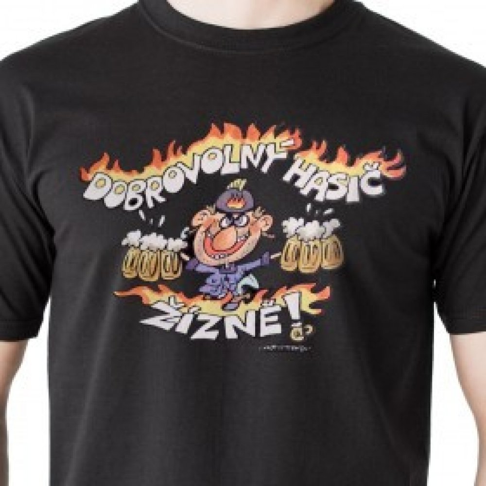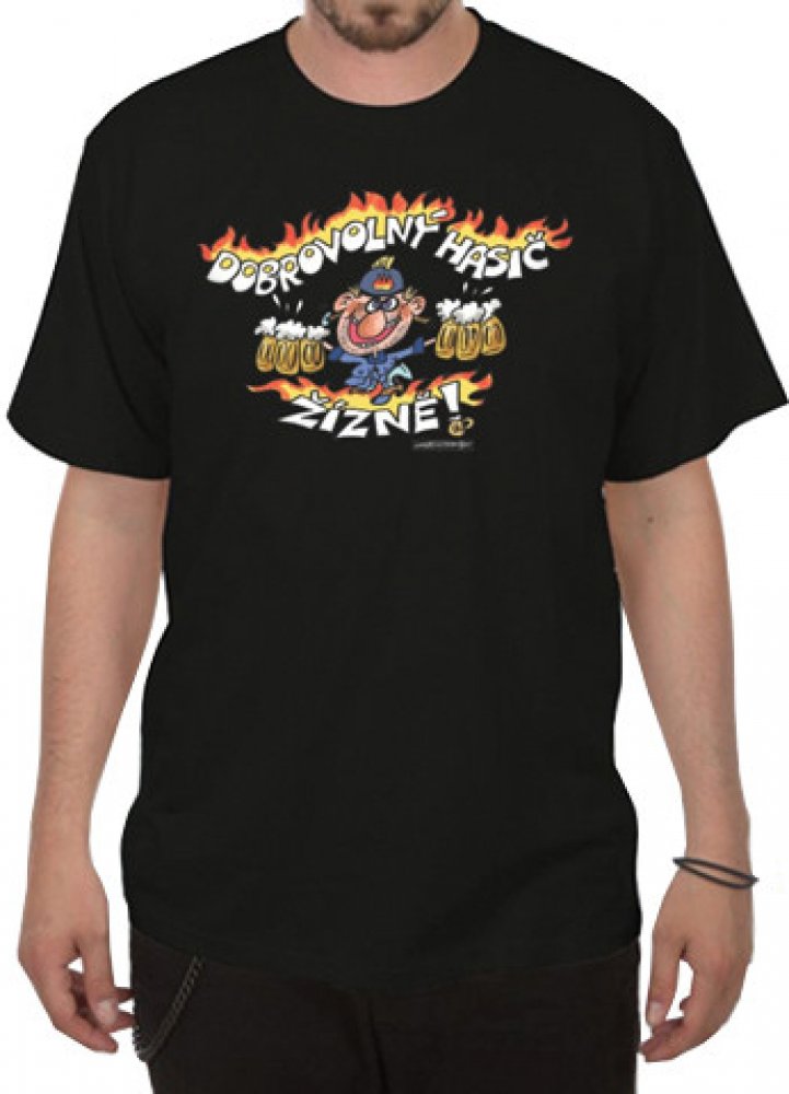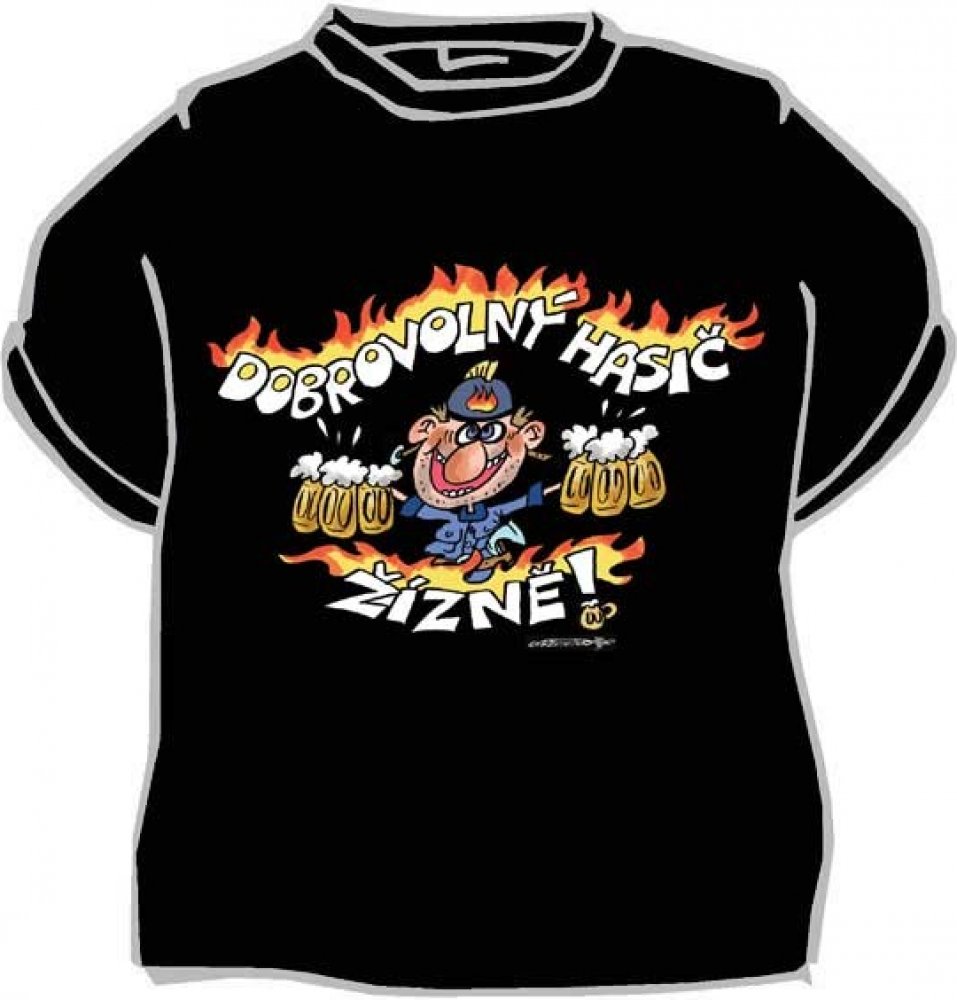 Tričko Dobrovolný hasič žízně - velikost L je humorné tričko vhodné pro všechny dobrovolné "hospodské" hasiče žízně. Tričko je černé barvy, vyrobené je ze 100% bavlny. Na tričku je obrázek hasiče držícího v rukou šest půllitrů piva a nápis "Dobrovolný hasič žízně". Vynikající a praktický dárek pro každého žíznivého štamgastu nebo i hasiče.
