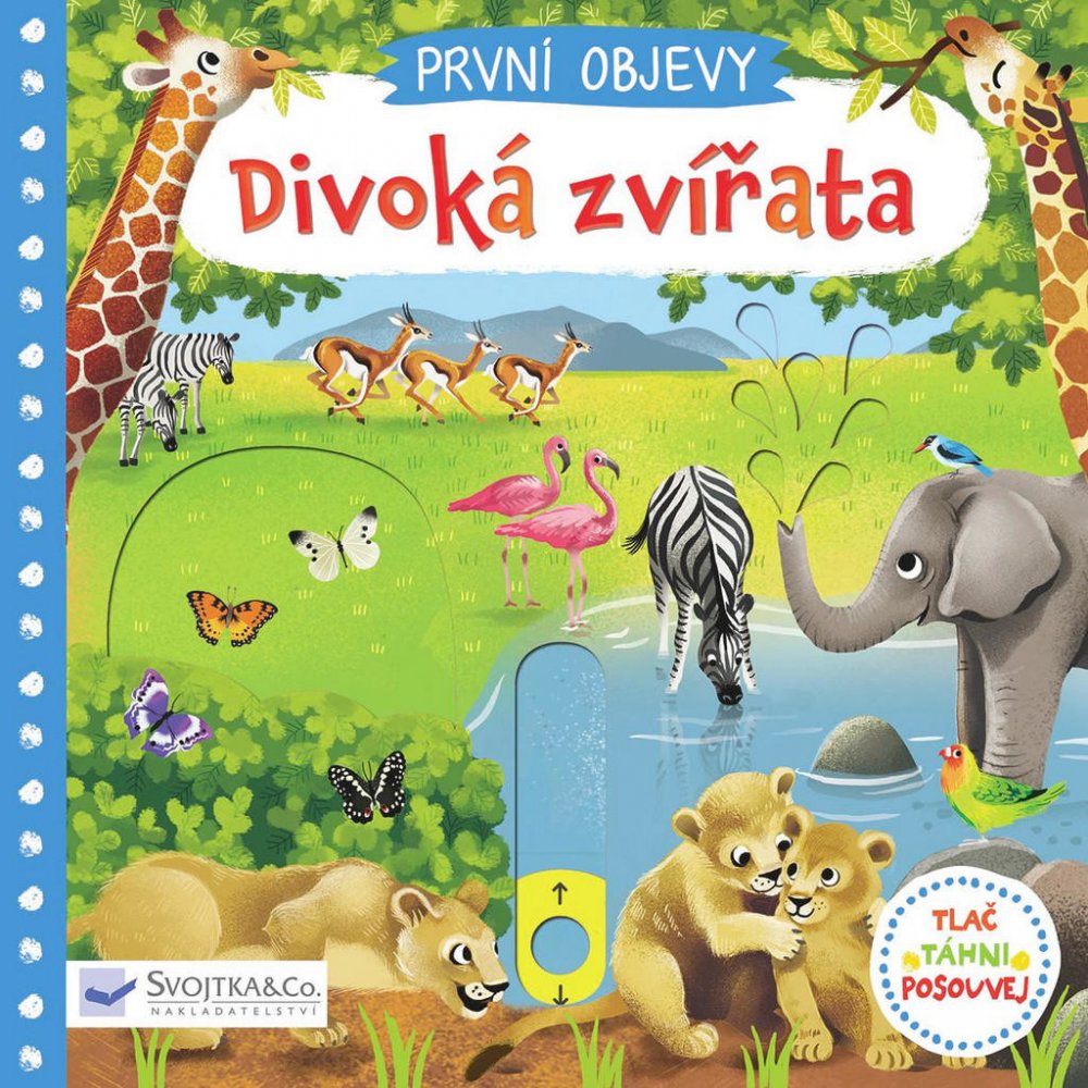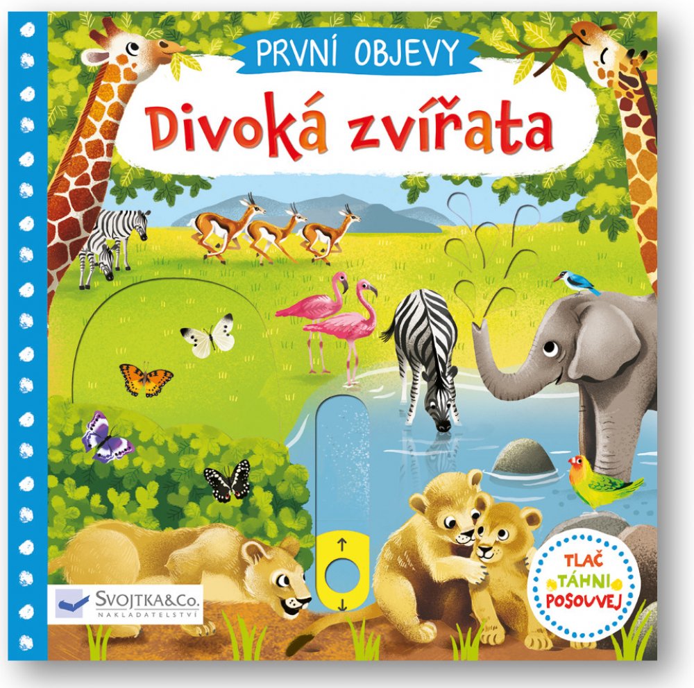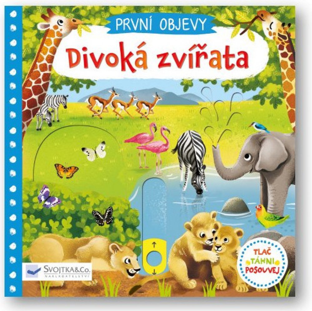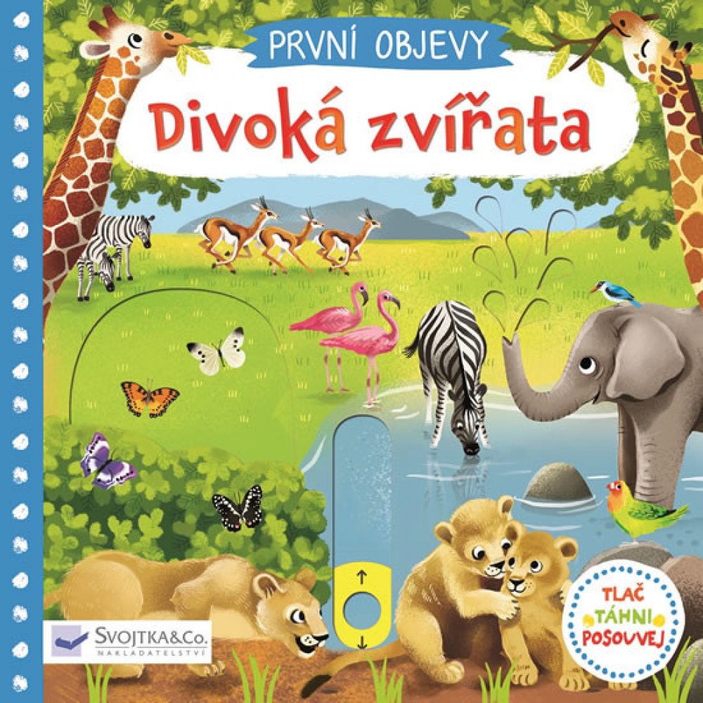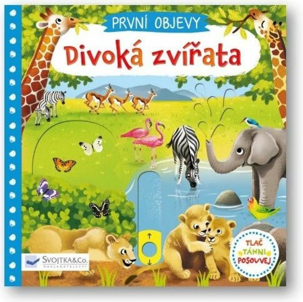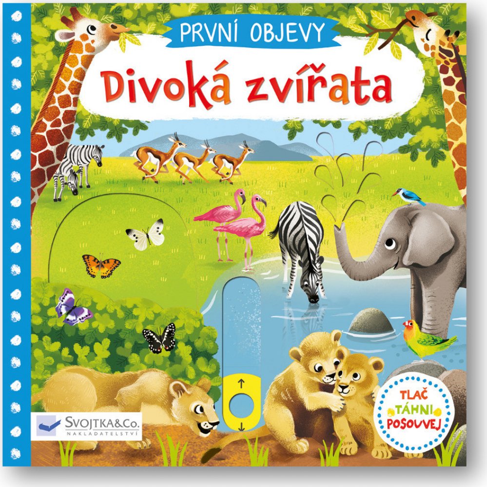 Prozkoumej divoká zvířata žijící na savanách! Najdeš tu vysoké žirafy okusující koruny stromů, gorilí rodinku i hrochy, kteří se ze všeho nejraději povalují ve vodě. Prohlédni si tuto knížku a seznam se s nimi! Na koho asi číhá lev a kam míří sloní rodina? Kniha z řady První objevy s obrázky má v každé scéně pohyblivé prvky, díky nimž se děti seznámí s úžasným světem přírody a zároveň si procvičí jemnou motoriku.