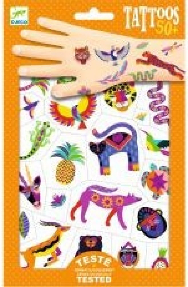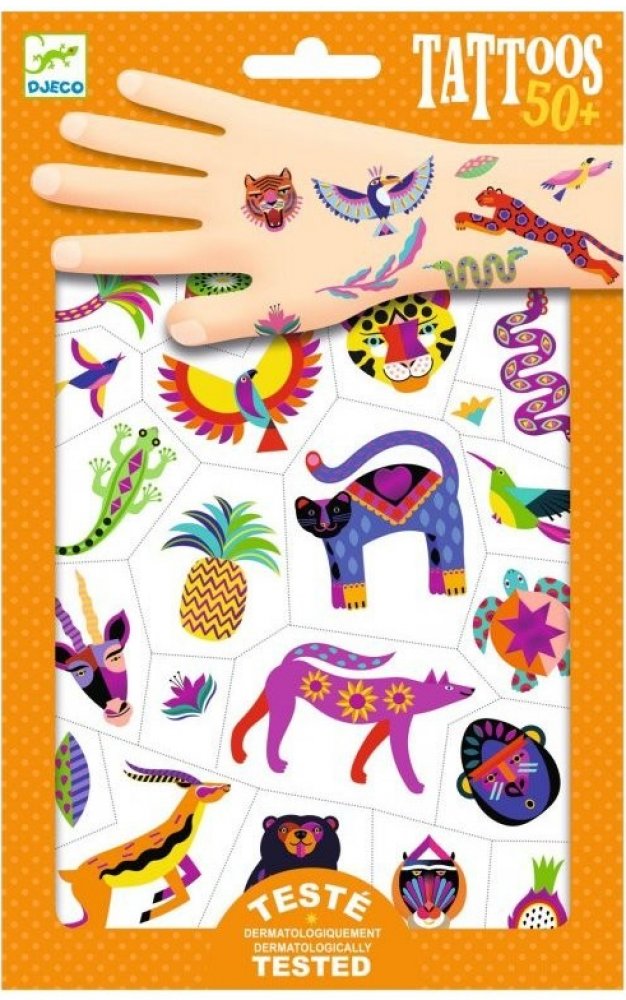 Svět báječných tetovaček! Tetování – Djeco – Divoká krása je vhodná hračka pro děti od 3 let. Pro děti je připraveno více než padesát tetovaček, které mohou použít, jak se jim zlíbí!