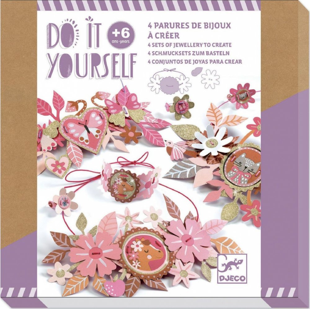 Kreativní sada pro dívky od 6 let. V balení je vše potřebné pro výrobu 4 sad papírových šperků s medailonky s rozkošnými portréty malých společníků (kočka, králík, kůň, motýl). Každá sada prstenu, náramku a náhrdelníku je barevně sladěná.