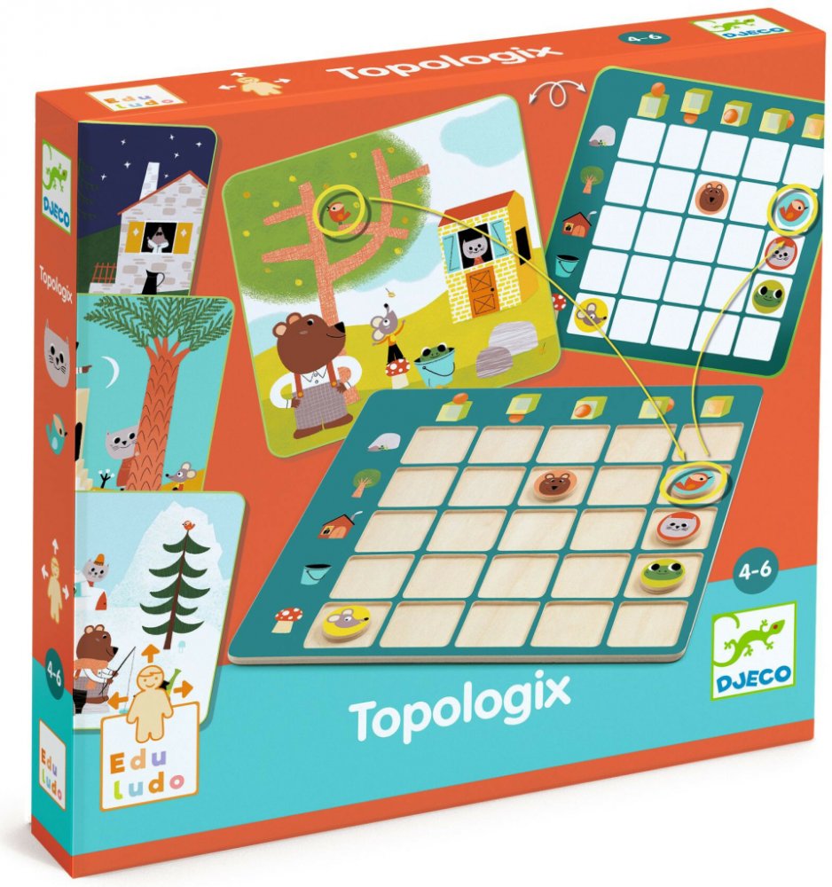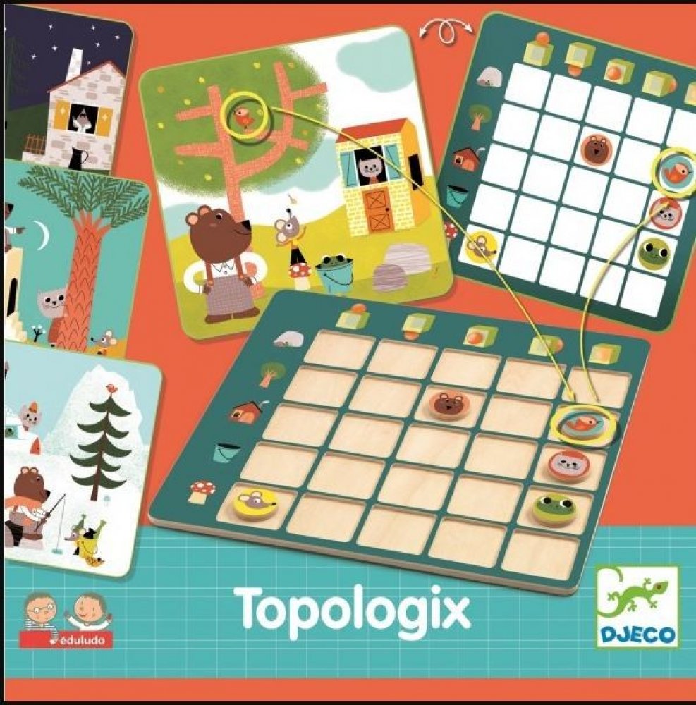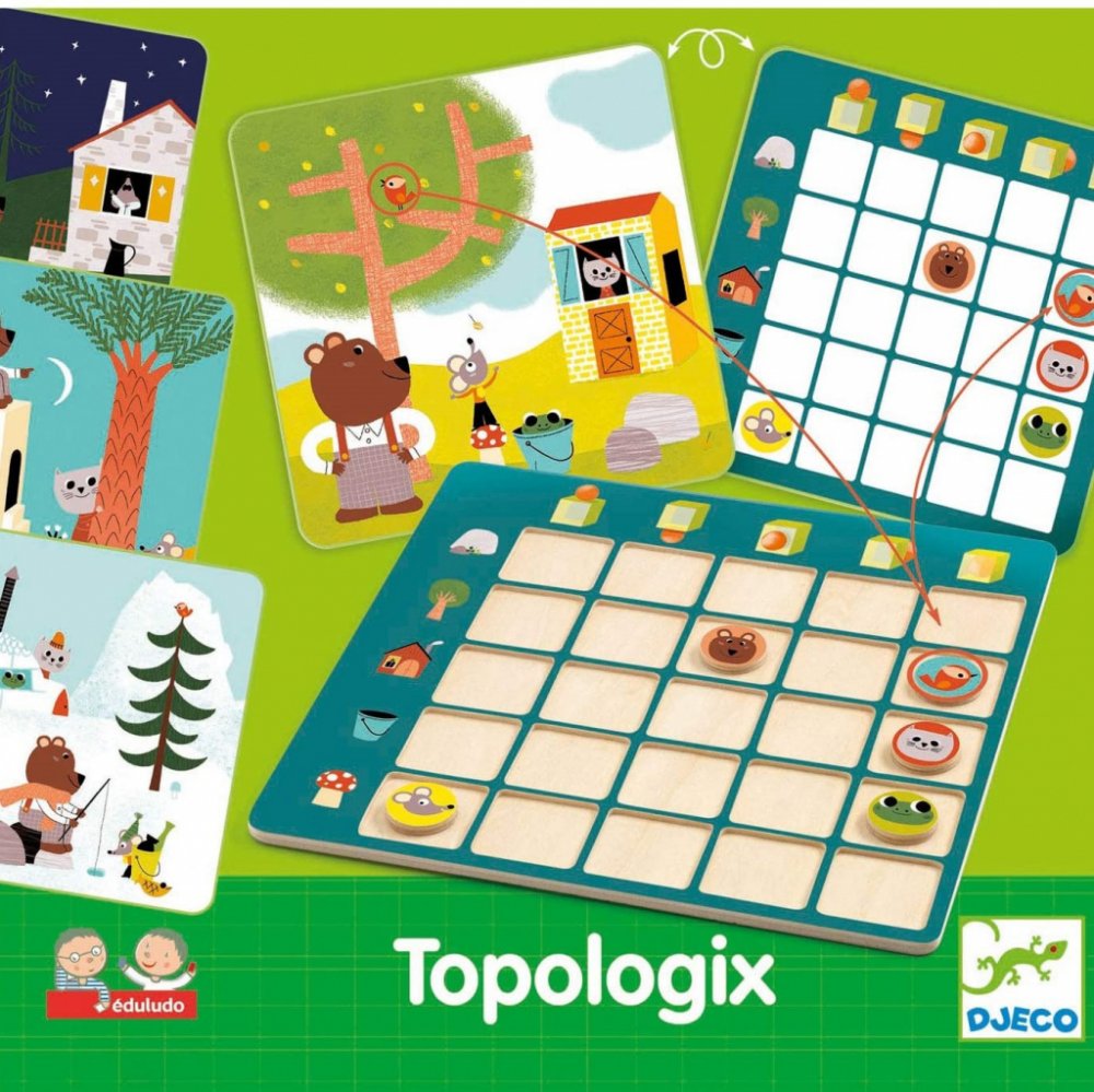 Didaktická hra Topologix z řady Eduludo od francouzského Djeco je doporučována řadou logopedů pro zlepšení rozvoje řeči, procvičování předložek, tvoření vět a zrakové percepce. Hra je vhodná pro děti od 4 let.