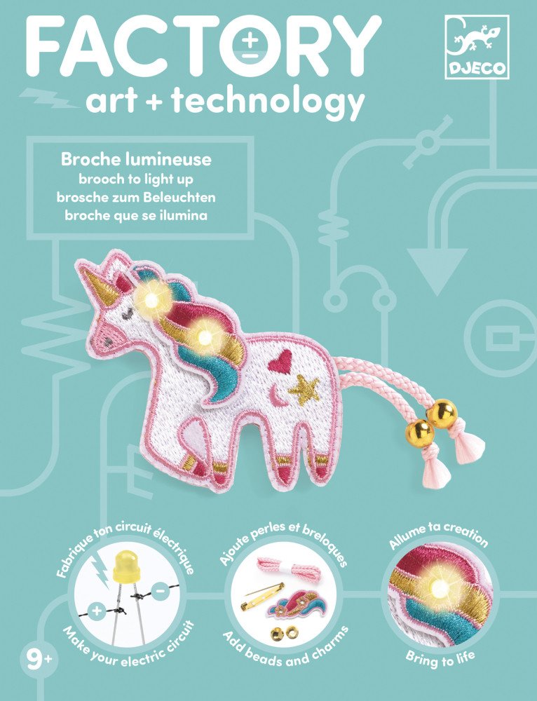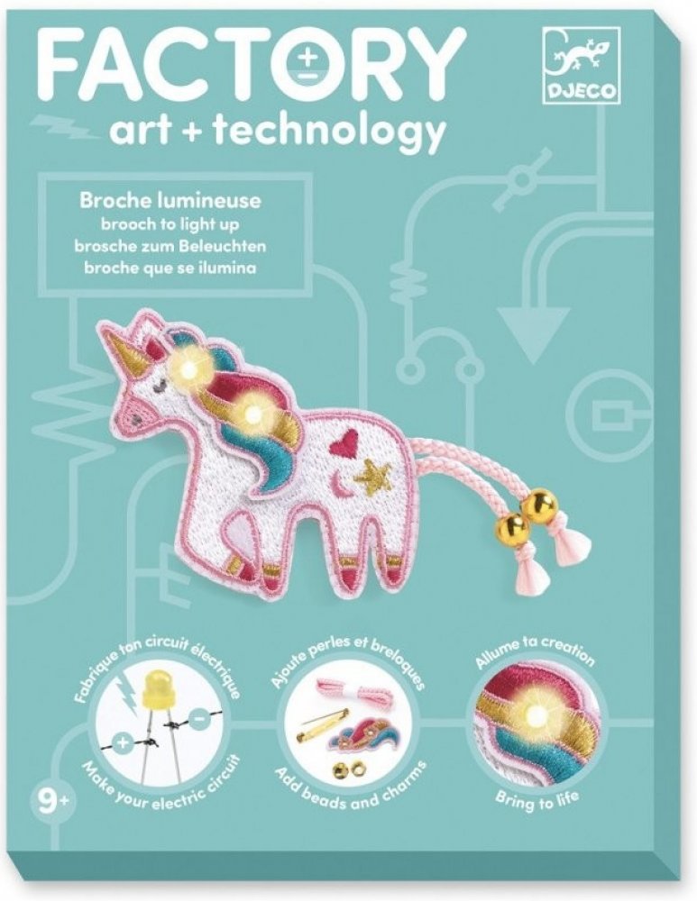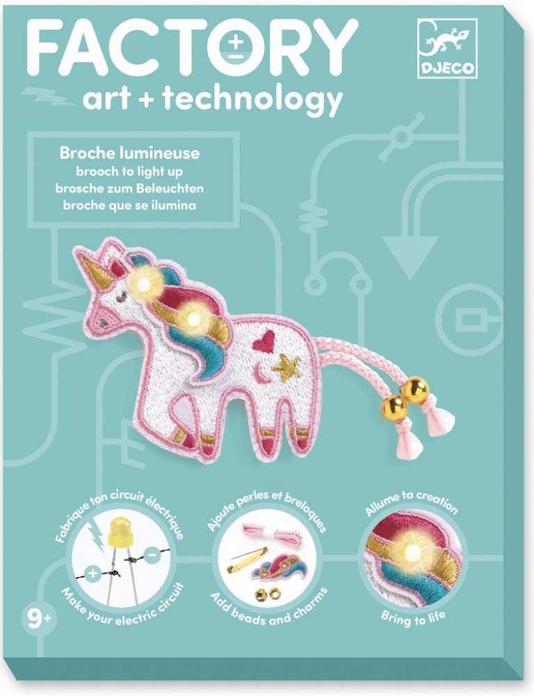 Djeco Factory art + technology Svítící brož jednorožec