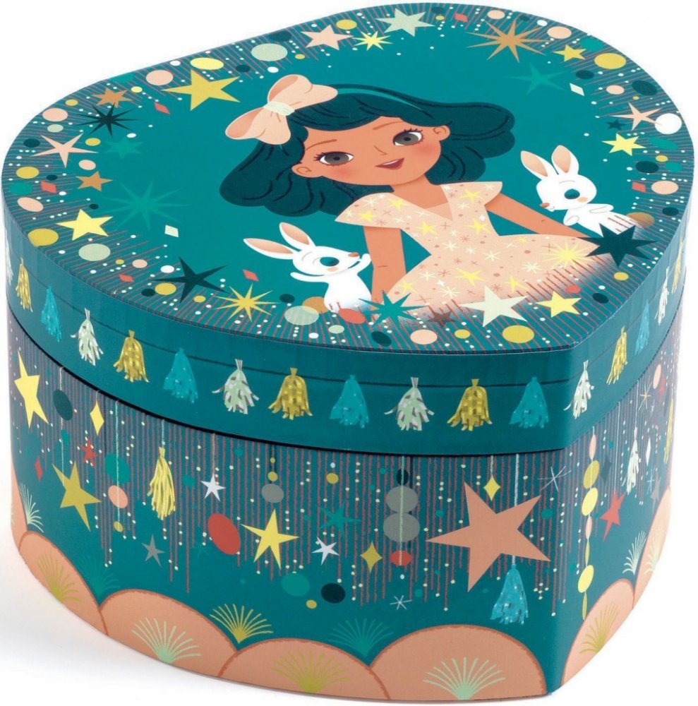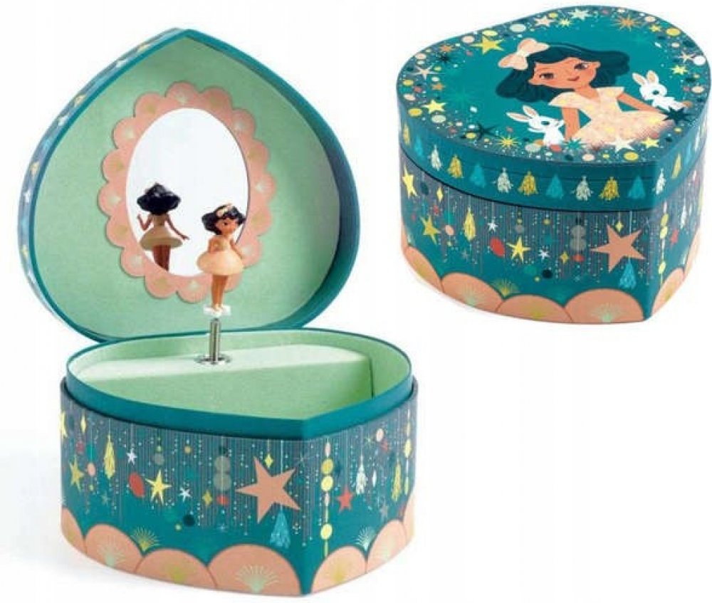 Nádherná hrací skříňka pro uschování pokladů. Hrací šperkovnice – Djeco - Tanečnice je vhodná pro děti od 4 let. Po otevření srdcové krabičky zazní krásná melodie a roztančí se krásná tanečnice. Ukryjte do krabičky veškeré své prstýnky, náramky a jiné cennosti.