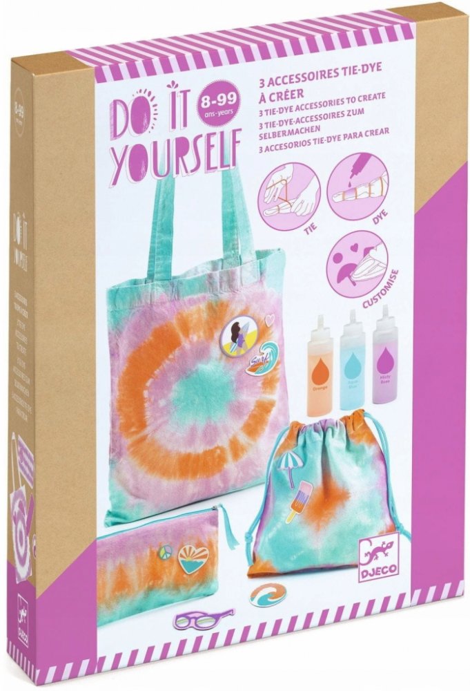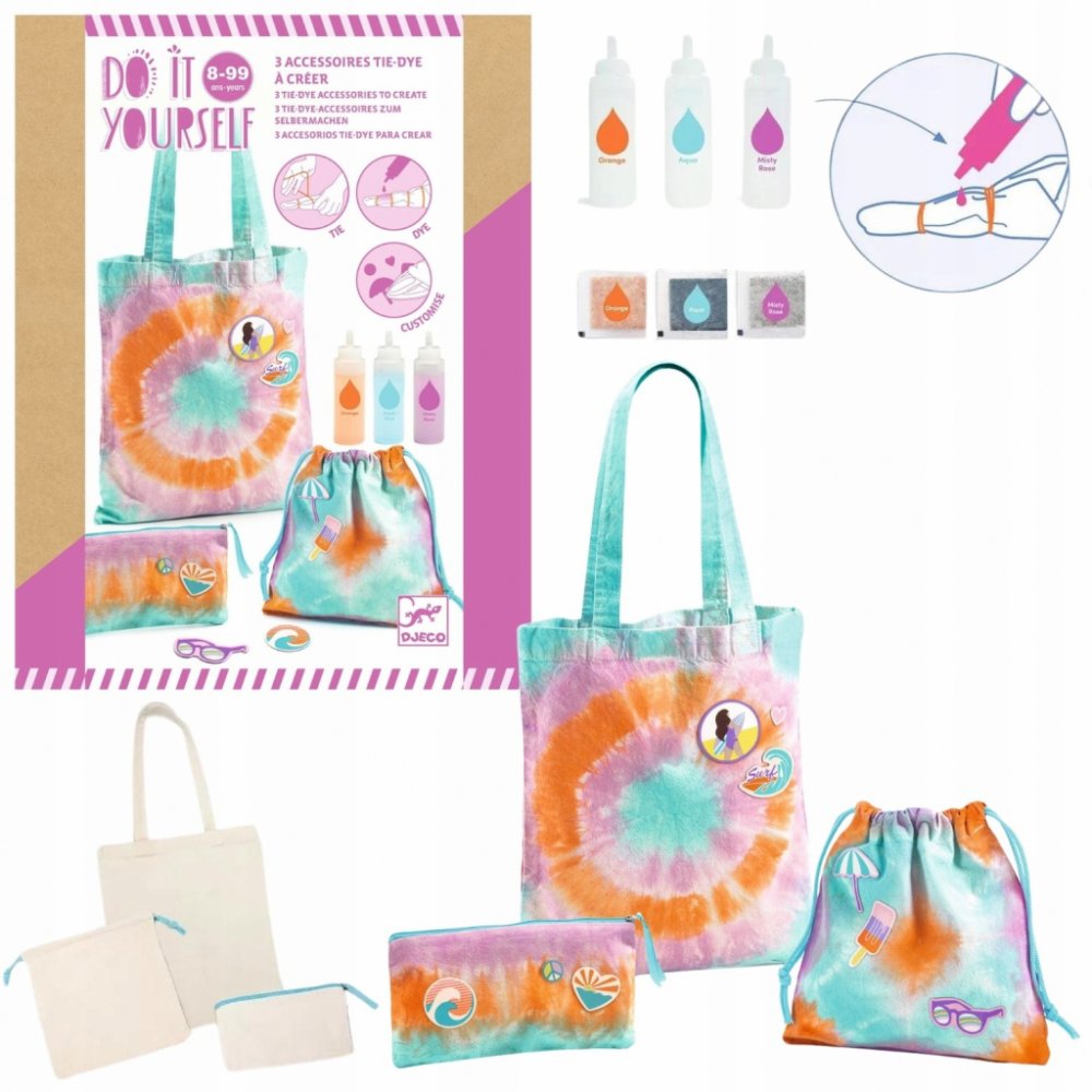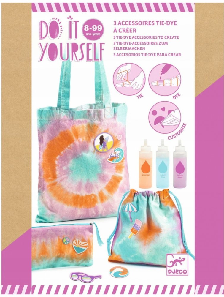 Umělecká sada z řady DIY založená na metodě tie&dye (anglicky zavažte a obarvěte) značky Djeco.