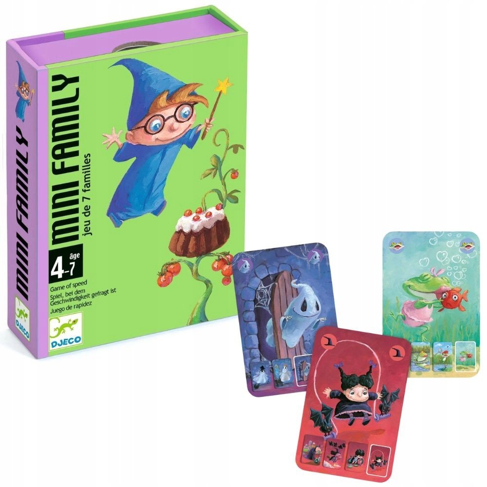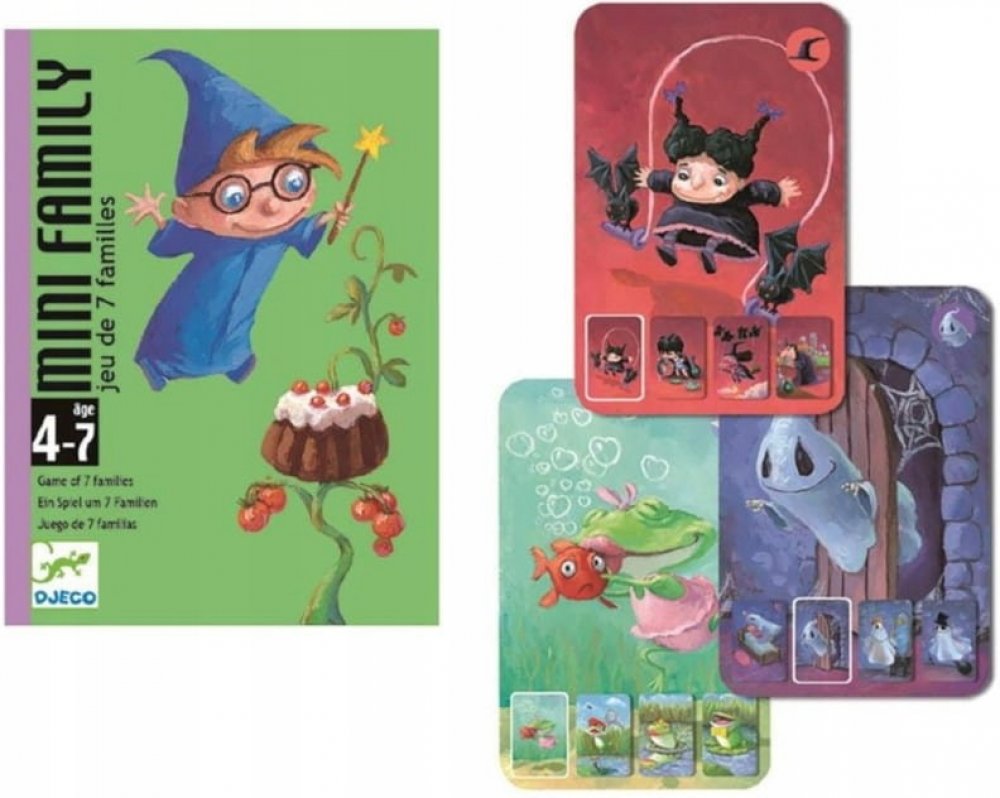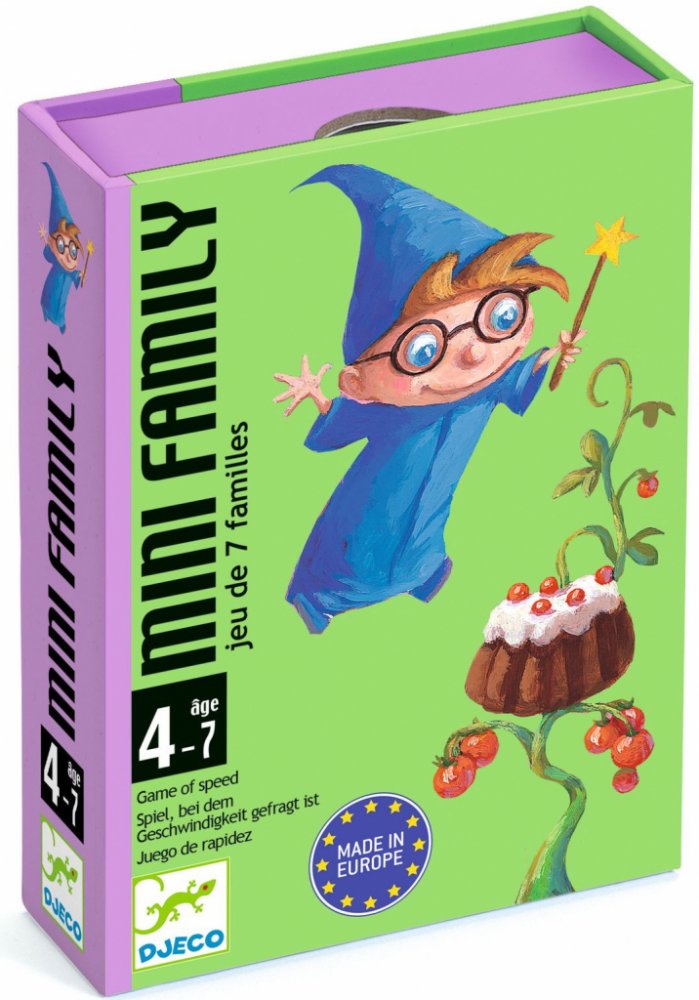 Karetní hra Mini Family od firmy Djeco je graficky krásně zpracované kvarteto. Má jednoduchá pravidla a zvládnou ho již nejmenší hráči.