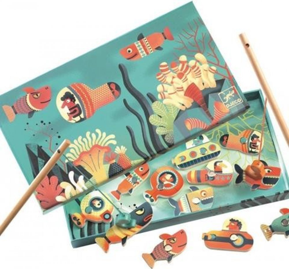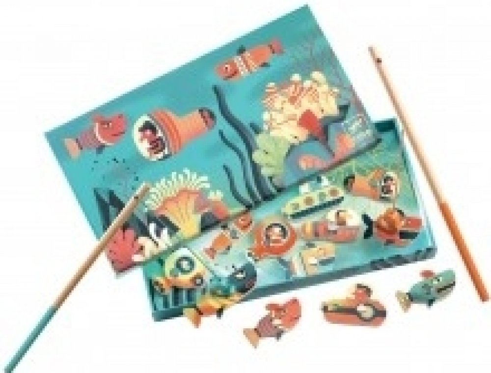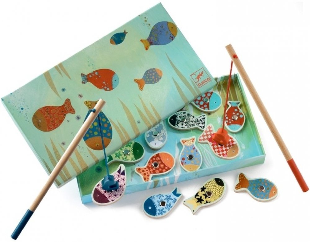 Obsahuje 12 dřevěných dílků ryb, 2 dřevěné pruty Materiál: dřevo