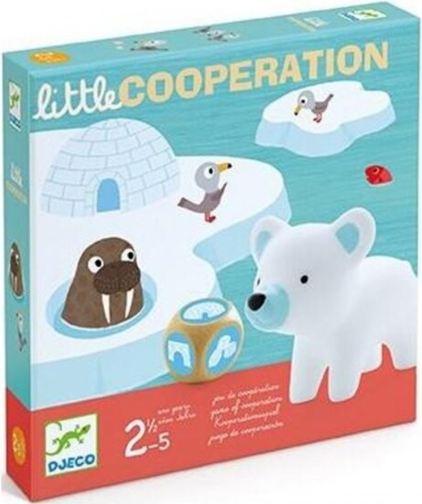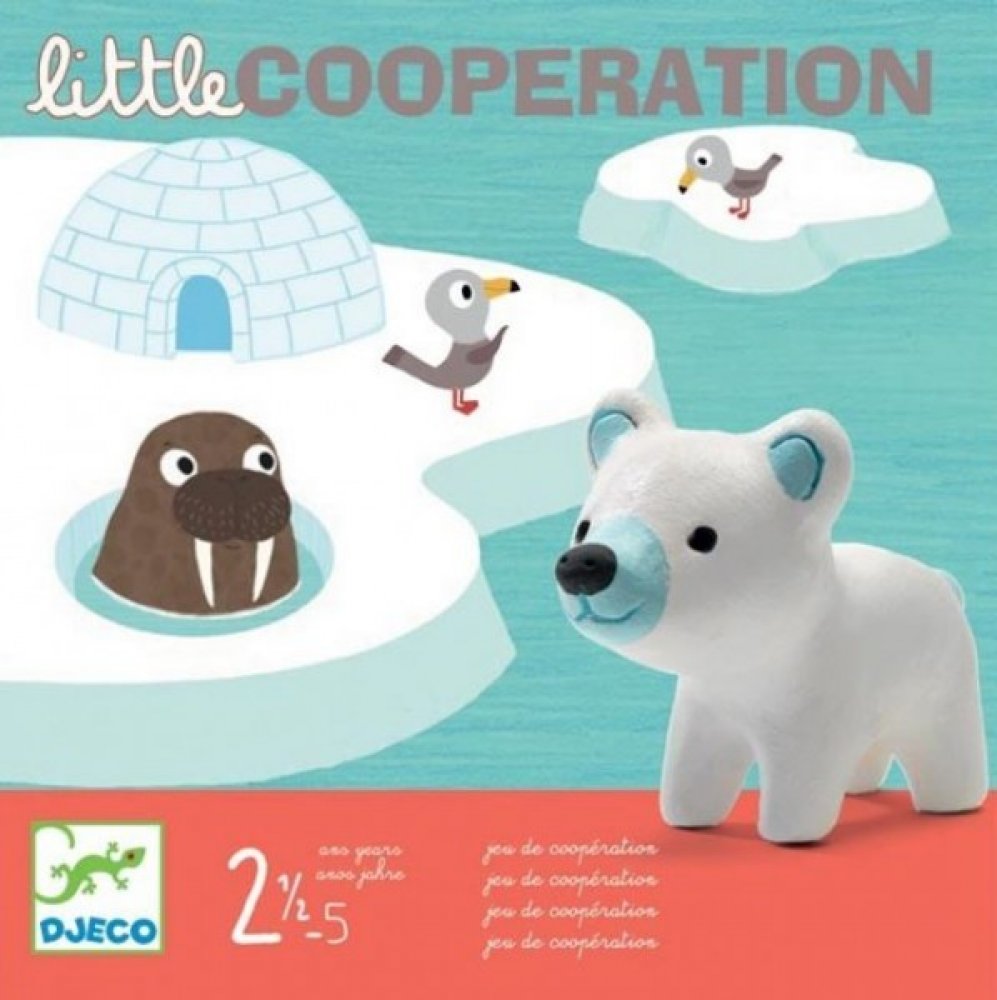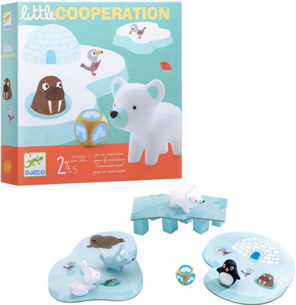 Zábavná jednoduchá hra o cestě po tenkém ledě! Společenská hra – Djeco – Malá spolupráce je vhodná pro děti od 2,5 do 5 let. Severská zvířátka se snaží dostat do iglú. Všichni musí spolupracovat, protože jen tak se dostanou do bezpečí přes slabý ledový most, který se může každou chvíli zhroutit.