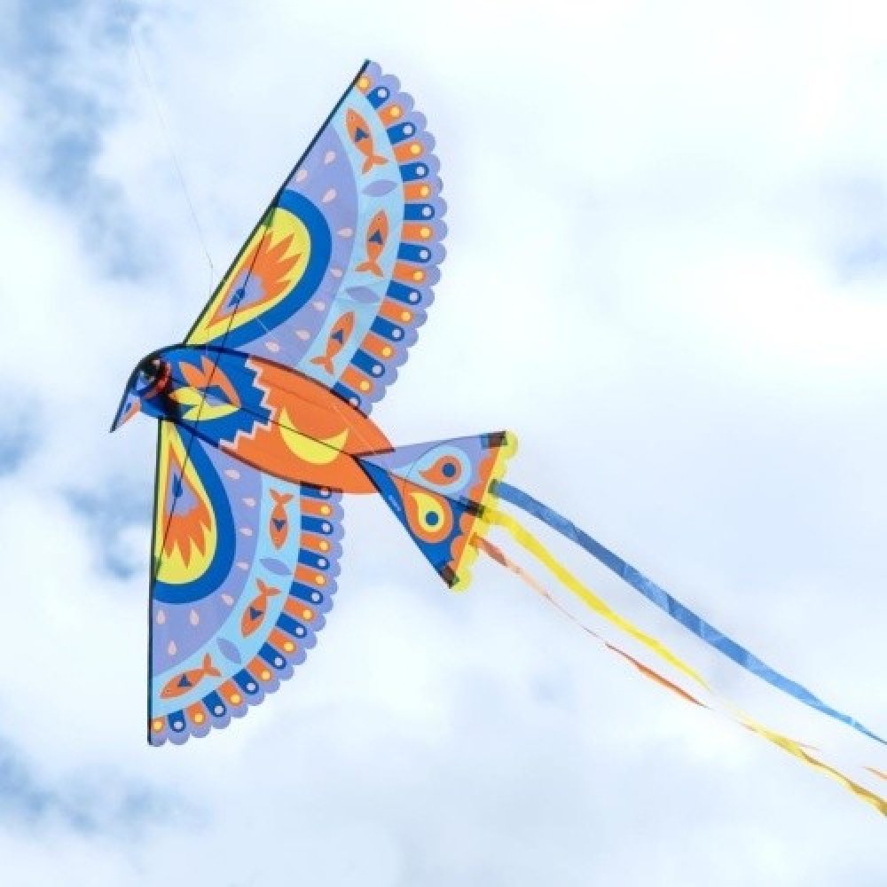 Vypusťte kouzelného ptáka až do výšky 40 metrů! Obří padák s ptačím designem a barevným potiskem má dlouhý barevný ocas a ještě mnohem delší šňůru s rukojetí. Sestavení je snadné, stačí zasunout výztužné tyče do bočních kapes na zadní straně. Na obloze vypadá velkolepě! Křídlo je dodáváno v textilním obalu.