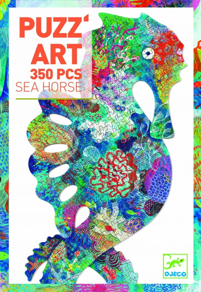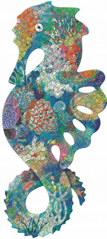 Propadněte kouzlu barevné grafiky imaginárního světa této skládačky. Nádherně ilustrované puzzle jsou určené pro děti od 6 let. Nový formát bez rohů a hranic v siluetě mořského koníka, na kterém je spousta detailů. Velikost složeného obrázku je 30 x 68 cm. Velikost balení je 34 x 23 x 5 cm. Součástí balení je i plakát, který lze využít jako šablonu při skládání. Vyrobeno v Evropě.