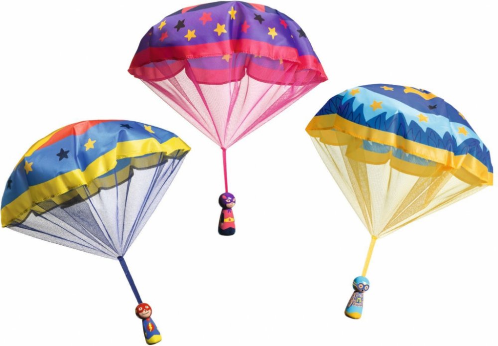 ParašutistaLétající hrdinové v akci!Objevte nový pohled na klasickou hračku s Parašutisty – malými dřevěnými létajícími hrdiny, kteří se ručně vypouštějí do vzduchu. Dokážete je udržet ve vzduchu co nejdéle? Tyto roztomilé postavičky s moderním designem zahrnující super bleska, super kočku a super sovu, se prodávají jednotlivě v krásných krabičkách.Proč si Parašutisté získají vaše srdce: