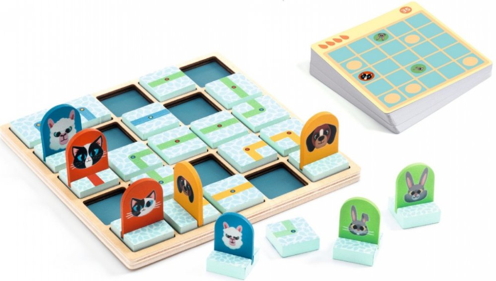 Zvířátka zabloudila na cestě domů! Děti jim musí pomoci najít jejich rodiče. Udělají to tak, že vyskládají žetony s vyznačenou cestou do dřevěné mřížky. Správná možnost je vždy jen jedna. Logická hra Path Path pro 1 hráče od 5 let.