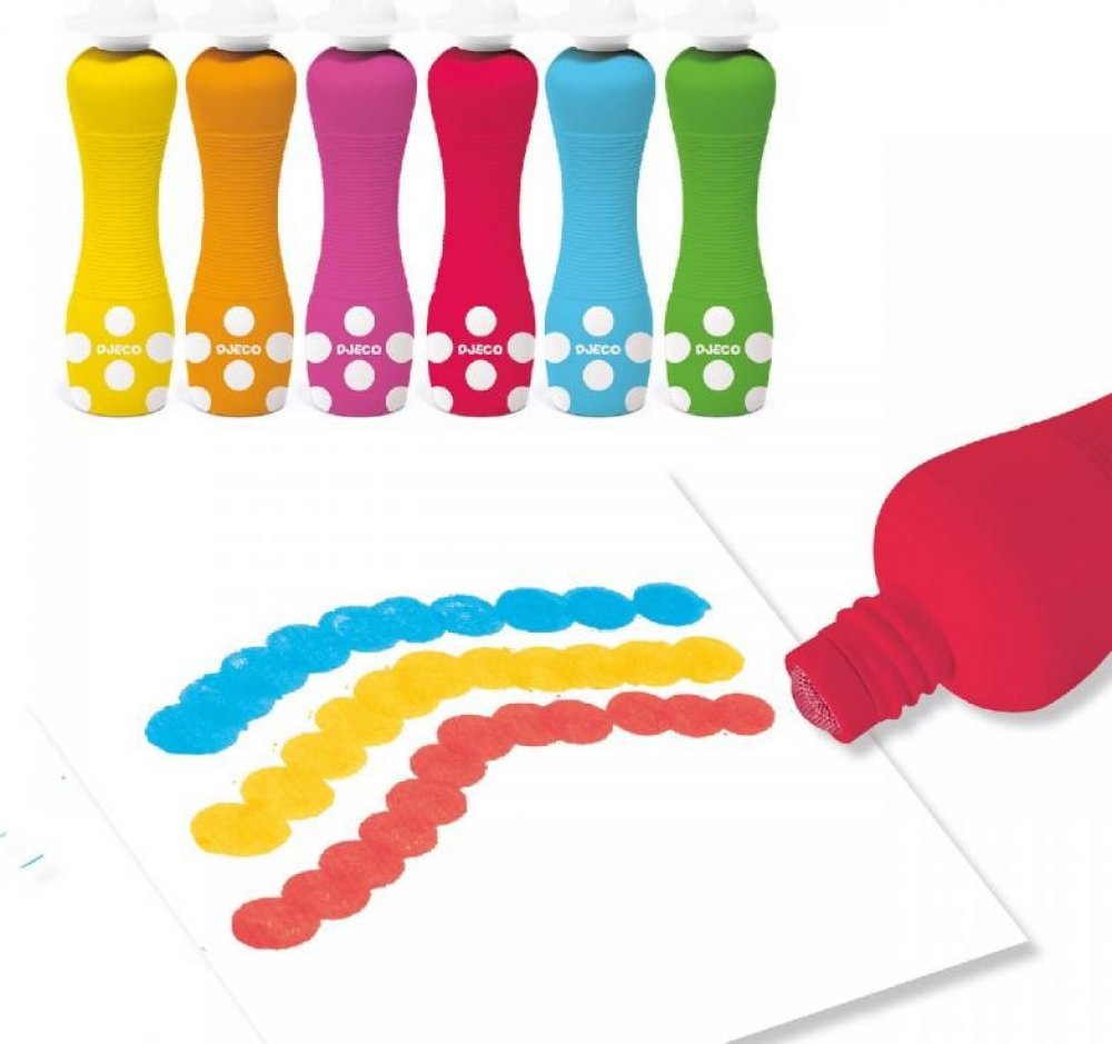 Barvy se velmi lehce nanáší. Děti mohou ťupkovat, barvit a zkoušet další výtvarné pokusy.