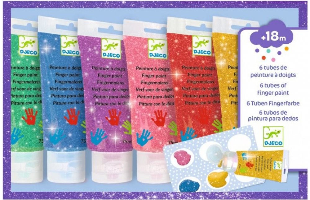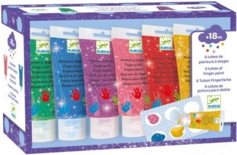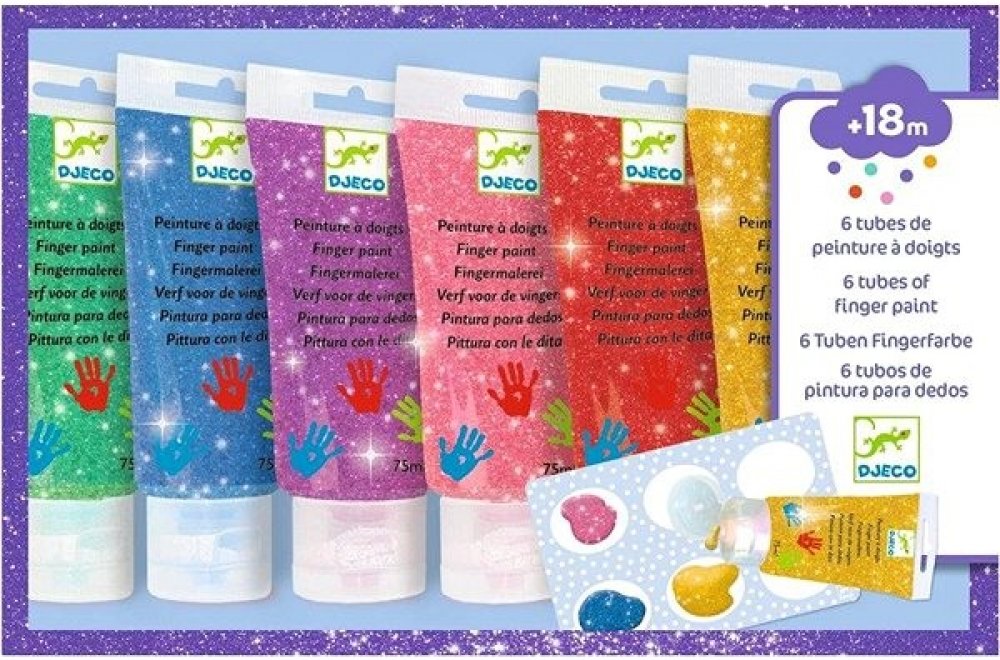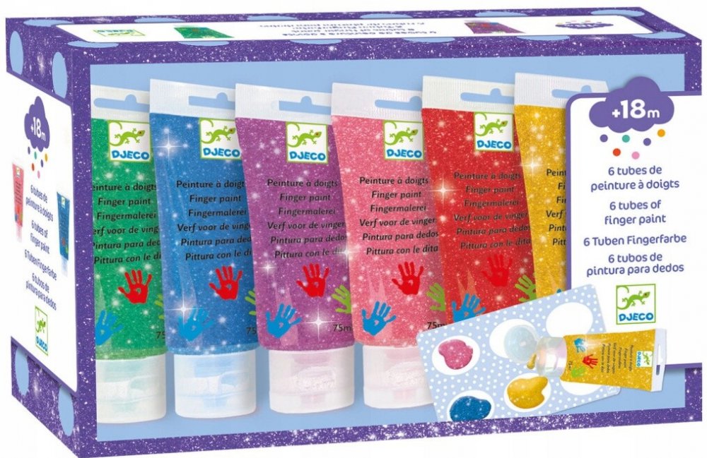 Djeco Prstové barvy v tubě 6 ks třpytkové