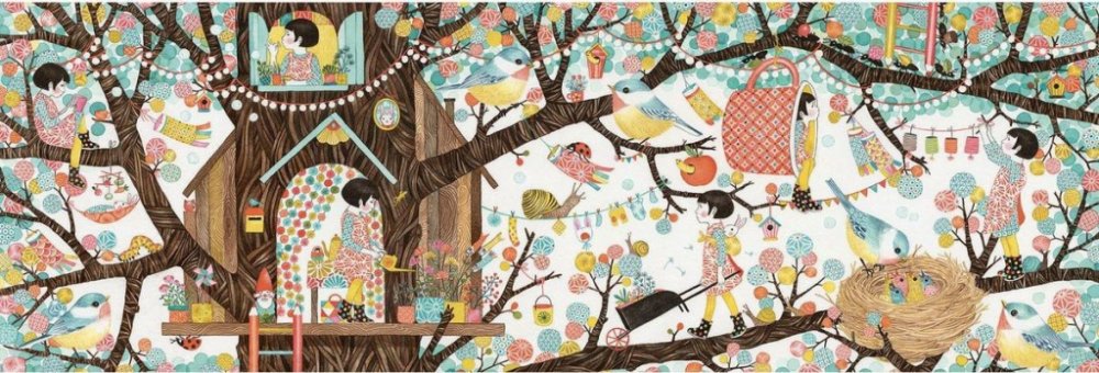 Skrytý v srdci květnatého stromu je život sladký a barevný. Dětské puzzle je skvělý způsob, jak u dítěte rozvíjet představivost, soustředění, ale také vypravěčské schopnosti při popisu děje na obrázku.