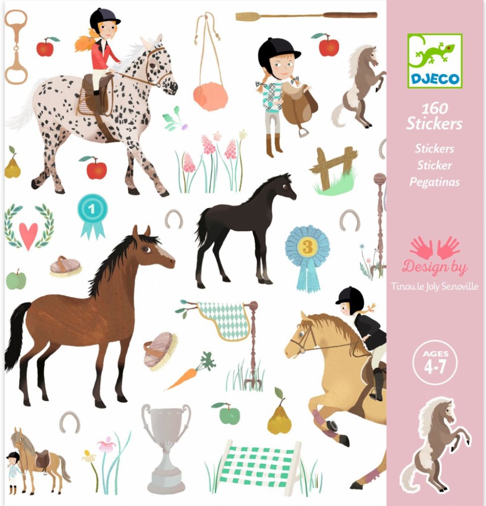 Samolepky vhodné pro děti od 3 let. Krásně ilustrované samolepky s motivy koní a všeho potřebného kolem nich. Samolepkami děti mohou polepit své výrobky, deníček nebo vytvořit pomocí samolepek svůj příběh.