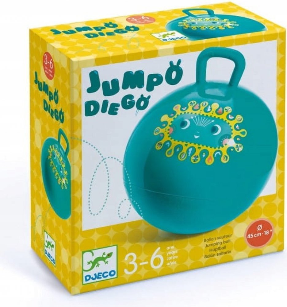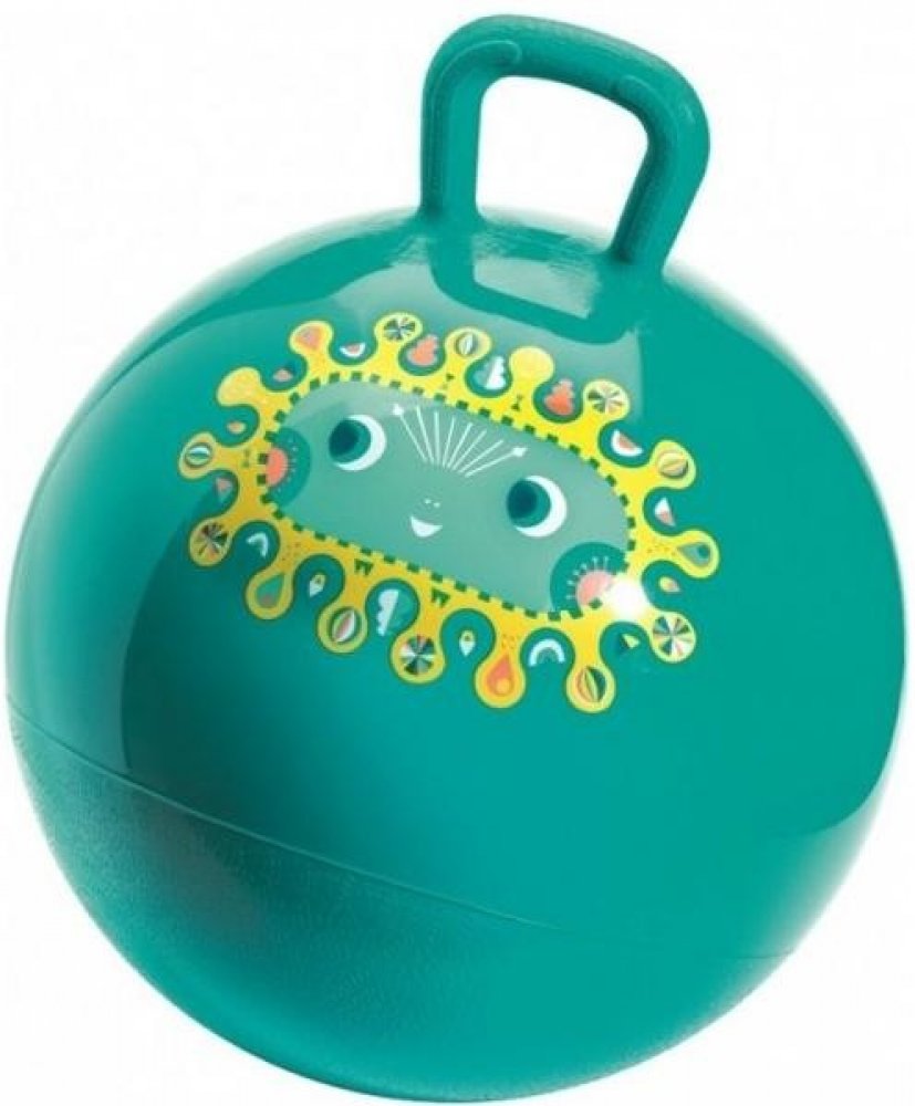 Krásný modrý skákací míč o průměru 45 cm s nepřilnavou plochou a praktickým držadlem pro děti od 3 let. Vysoce odolný materiál. Zaručujeme, že se při běžném používání nepoškodí.