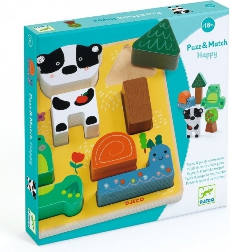 Djeco Dřevěná vkládačka a figurky 2v1 - Zvířátka jsou vkládací puzzle jednoduché na sestavení. Sestavte si roztomilá zvířátka, vkládajte je nebo se bavte vyměňováním dílků a vytvořte zvířátka dle své fantazie.