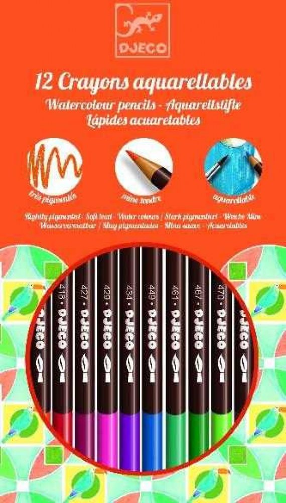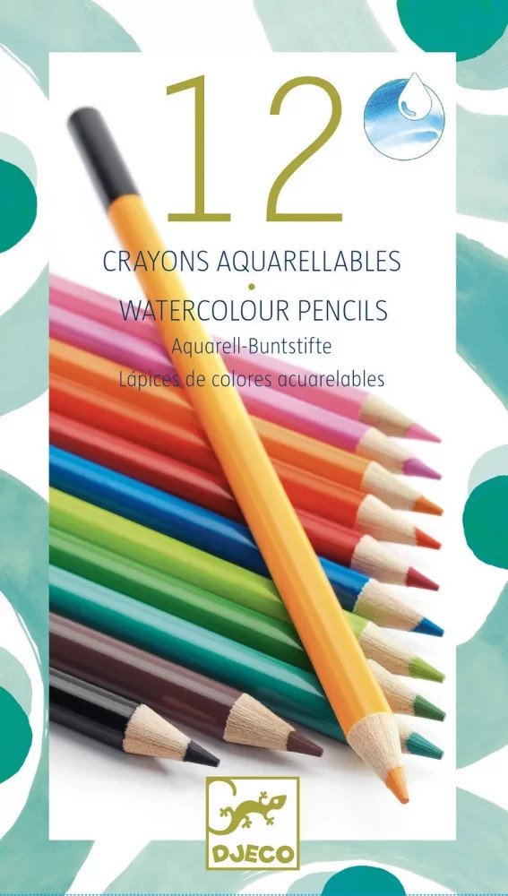 Šířka: 10 cm a délka: 18 cm. Sada 12 barevných tužek s měkkým grafitem a akvarelem. UPOZORNĚNÍ: Nevhodné pro děti do 3 let. Pro použití pod přímým dohledem dospělé osoby. UPOZORNĚNÍ: Nejedná se o hračku. Výrobek z papíru. Výrobce: Djeco France - Výrobek je nový a prodává se v originálním balení dodaném výrobcem. Dostupné obrázky mají pouze orientační a informační charakter.