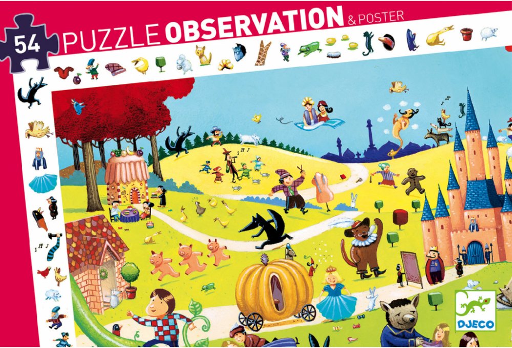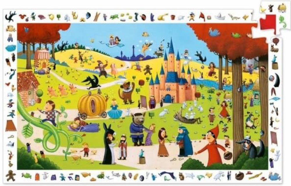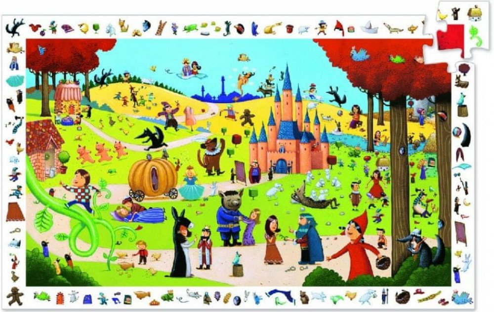 Puzzle, které dětem přináší nejen radost ze skládání, ale i zábavu při hledání postaviček ze známých pohádek. Po sestavení mohou děti objevovat detaily na hlavním obrázku a hledat předměty zobrazené v rámečku.