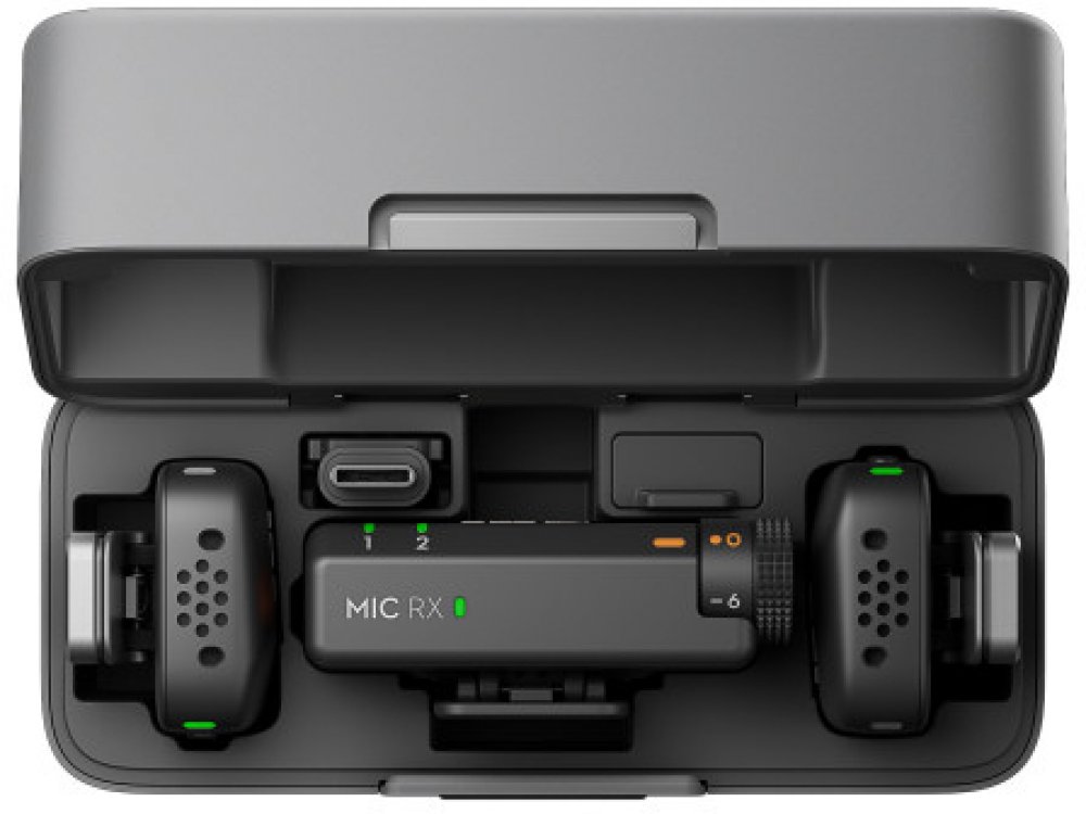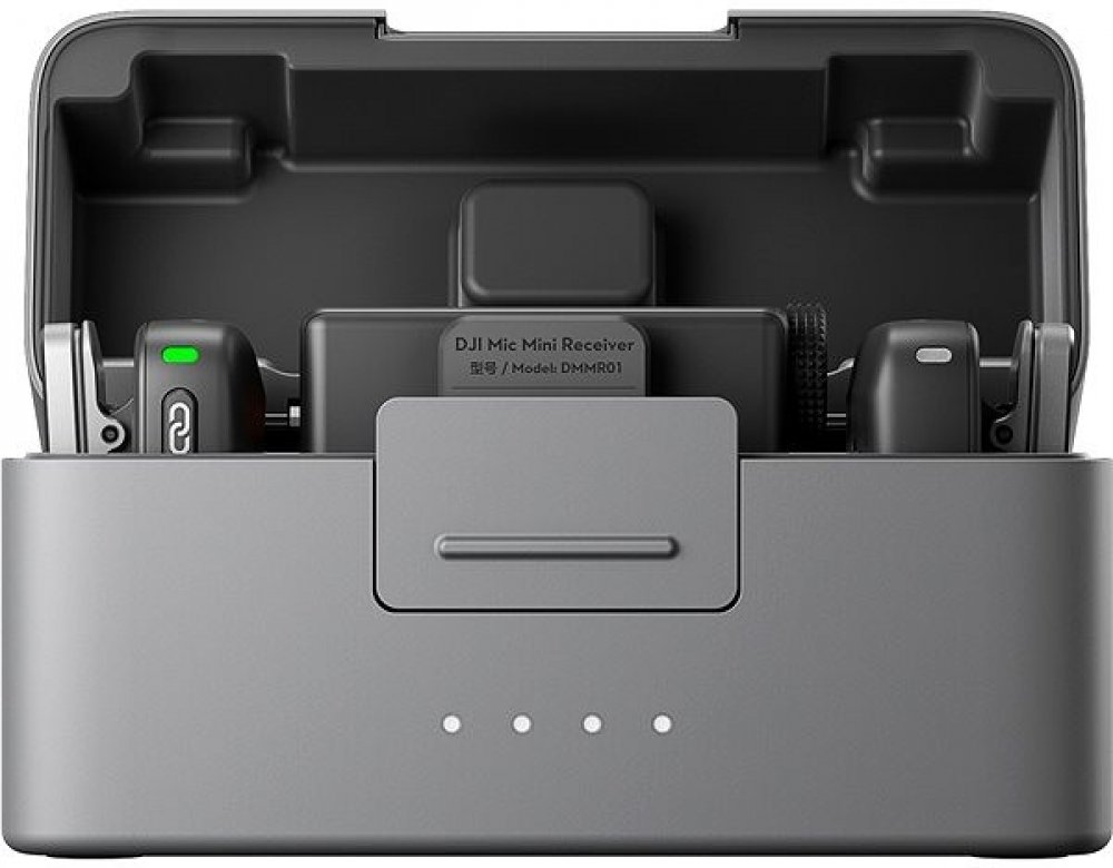Kompaktní DJI Mic Mini má inovativní design pro snadné skladování. Nabíjecí pouzdro umožňuje úhledně uložit dva vysílače, jeden přijímač, adaptéry pro mobilní telefon a větrné clony. Větrné clony na vysílačích není třeba při ukládání do pouzdra odstraňovat. Celá sada je pohodlná na použití i skladování.