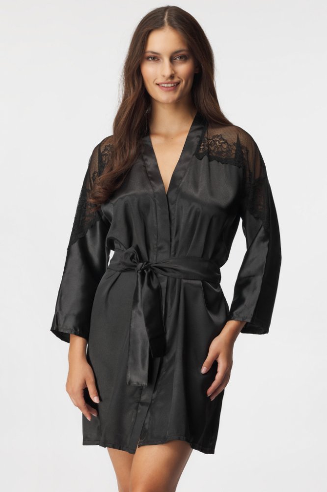 DKaren dámský saténový župan Betty černý