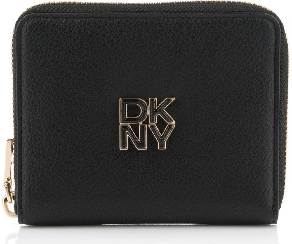 Dámská peněženka ze strukturované hovězí kůže prvotřídní kvality, zdobená kovovým logem DKNY ve zlaté barvě na přední straně. Elegantní provedení střední velikosti se zapínáním na zip je doplněno zadní kapsou, vnitřní kapsou na mince opatřenou zipem a několika přihrádkami na karty. Originální dárek i nezaměnitelný stylový doplněk pro všechny milovníky značky DKNY.