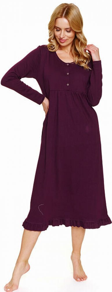 vínová 100% bavlna Dn-nightwear dlouhý rukáv jednobarevné