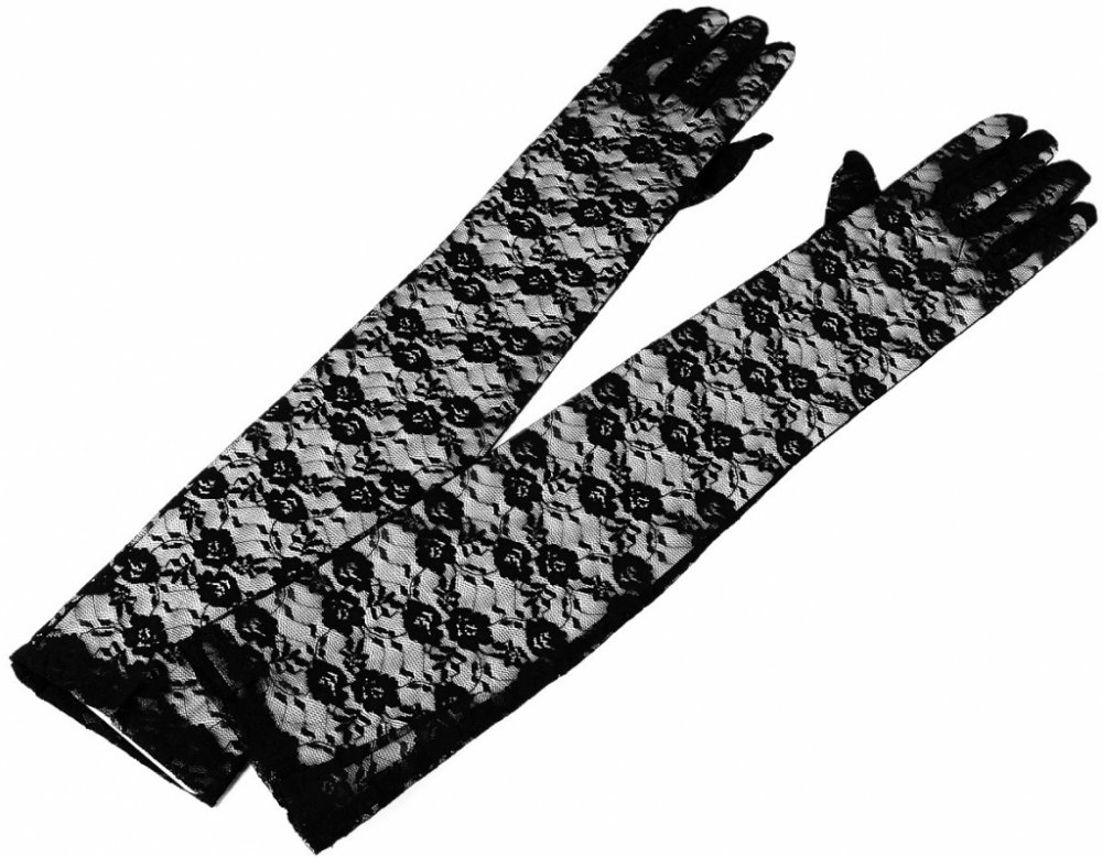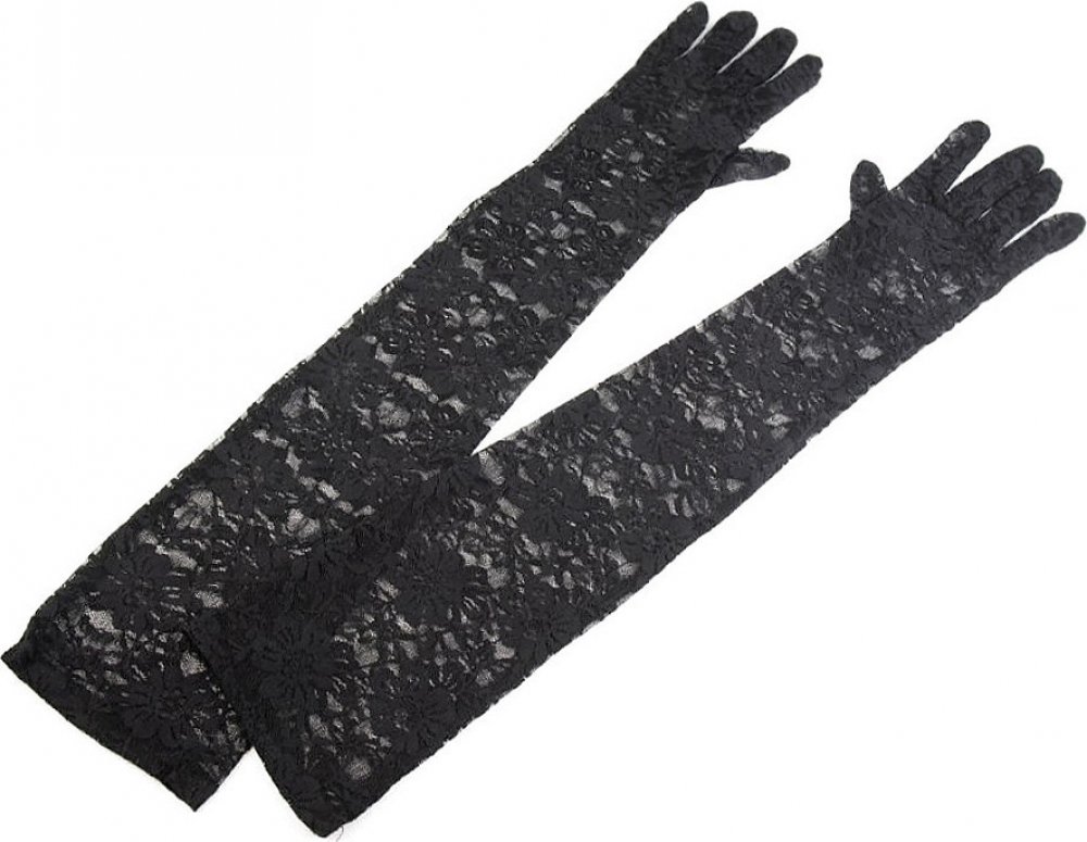 Dlouhé společenské rukavice krajkové 3 (50cm) černá