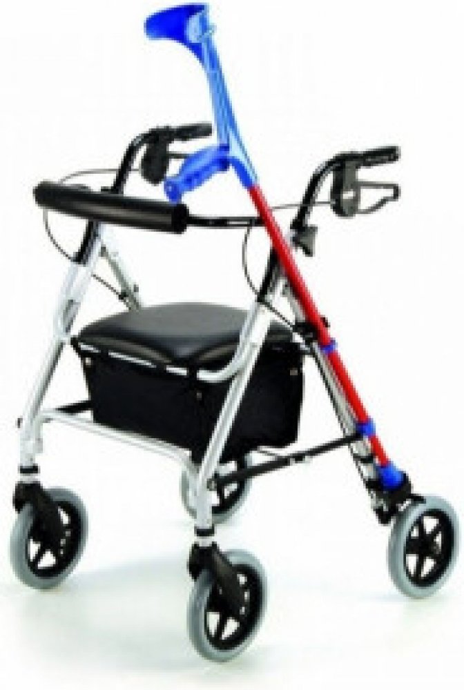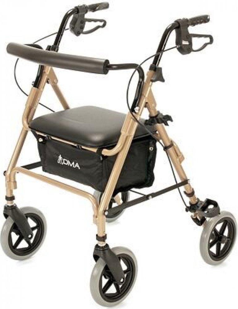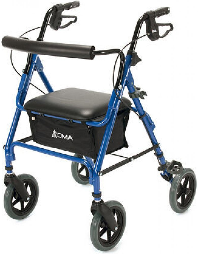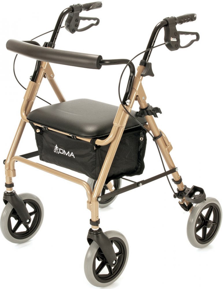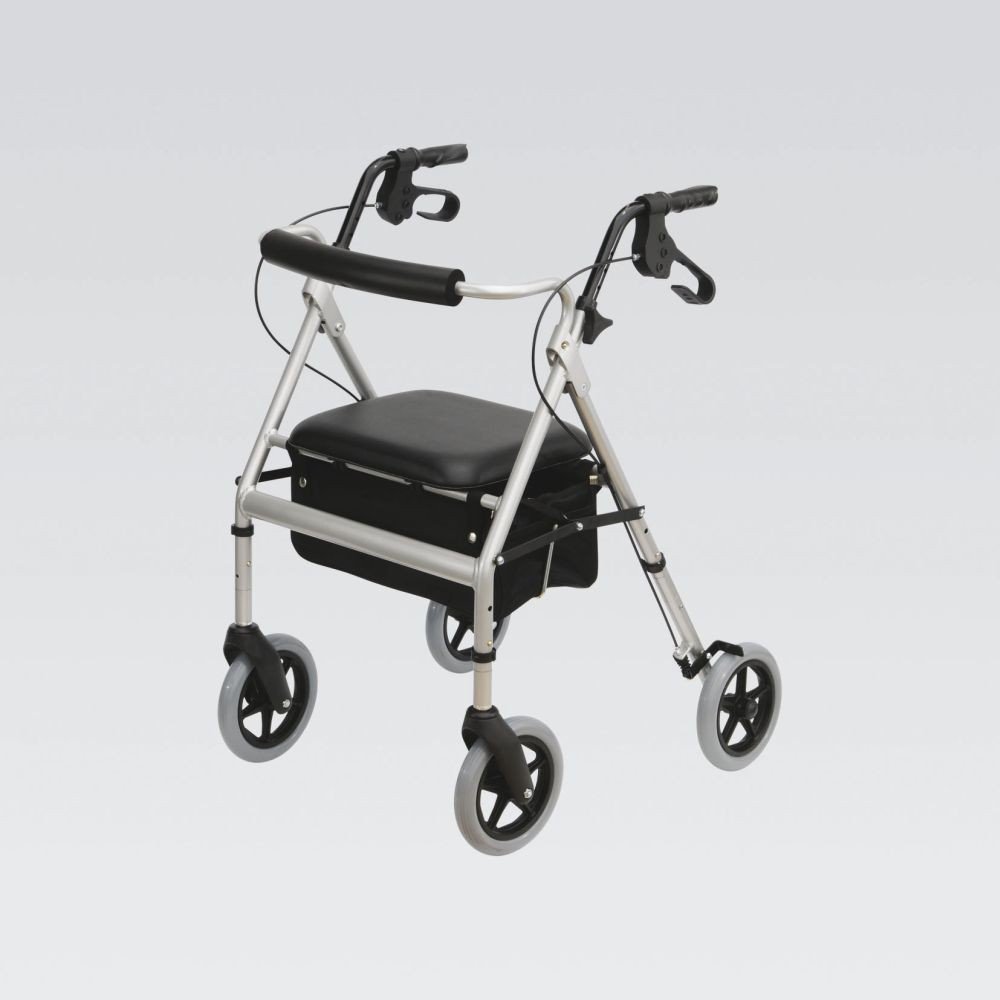 DMA Čtyřkolové chodítko odlehčené 103 - stříbrné—Skládací rám se sedátkem, nastavitelná výška, brzdy