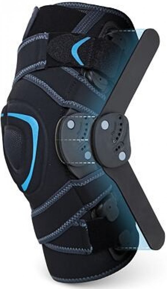 2 polycentrické ROM kloubové stabilizátory nastavení flexe: 0°, 30°, 55°, 75°, 95° nebo 110° nastavení extenze: 15° nebo 75° 4 křižné fixační dotahy na suchý zip polootevřené zapínání anatomická výztuha stabilizující čéšku síťovaná tkanina chránící čéšku a podkolenní jamku protiskluzové silikonové pásky individuální nastavení komprese extrémně přizpůsobivý a prodyšný materiál AirTex® anatomické ploché švy bezpečnostní reflexní prvky neobsahuje latex výška: 33.5 cm bilaterální (na levé i pravé koleno) 5 velikostí (obvod kolena) S: 32–35 cm, M: 35–38 cm, L: 38–41 cm, XL: 41–45 cm, XXL: 45–50 cm