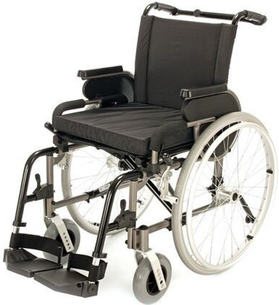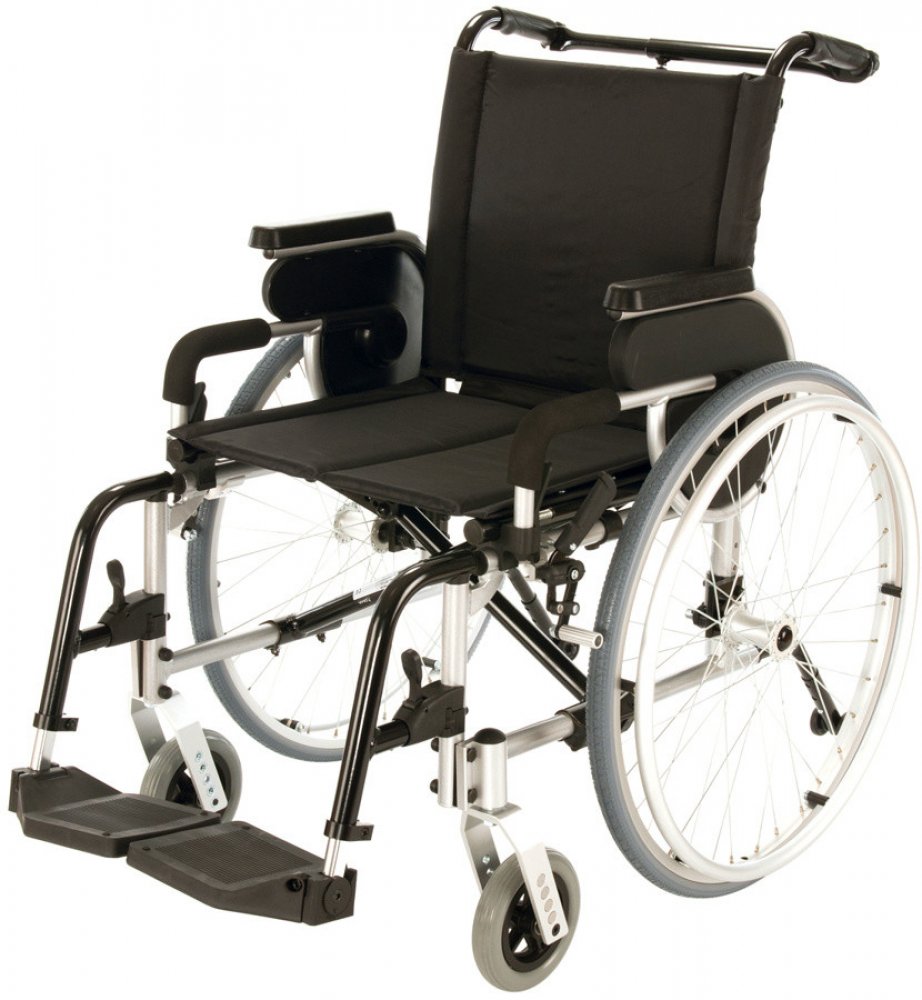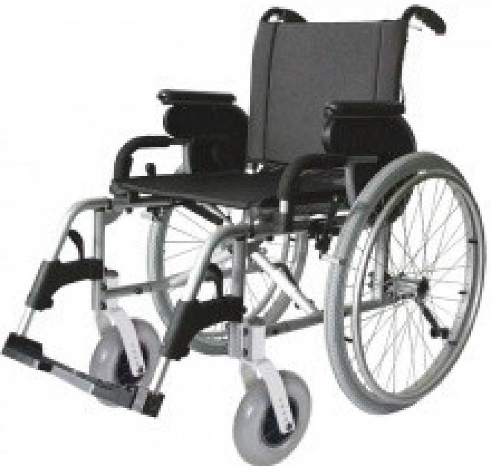 Odlehčený duralový rám, odklopné postranice, nastavitelný sklon podnožek, rychloupínací kola