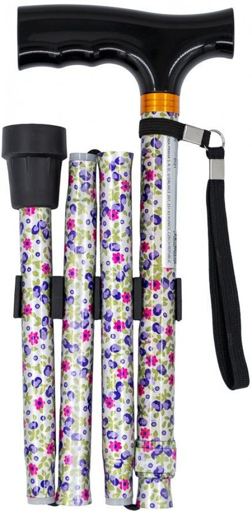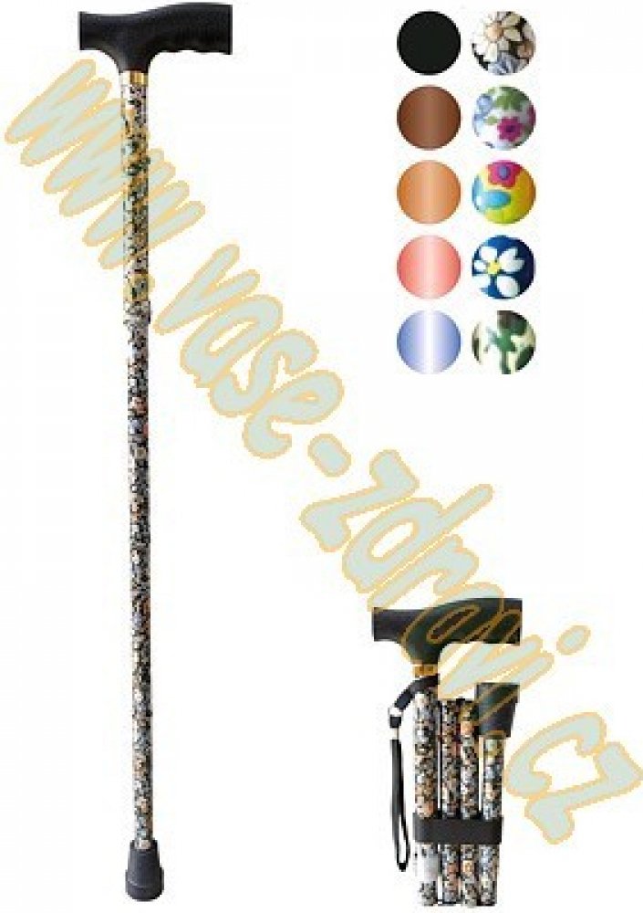 Lehká vycházková skládací duralová hůl s nastavitelnou výškou.