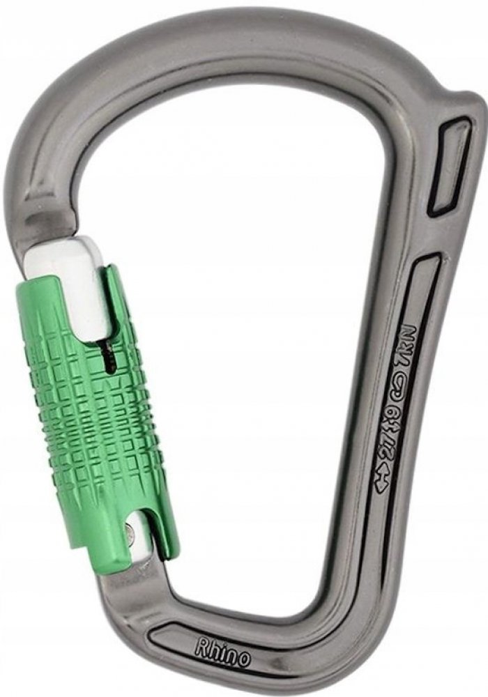 DMM karabina RHINO locksafe DMM RHINO locksafe je karabina s trojčinným zámkem. Novinka od předního výrobce lezeckého a pracovního vybavení DMM. Jak je dobrým zvykem firmy DMM, karabina má kvalitní propracování a líbivý design. Karabina má malý "roh", fungující jako zarážka proti přetočení, čímž nahrazuje pryžové zarážky, a tím zabraňuje křížovému namáhání karabiny. Vhodně doplňuje kladky, blokant...