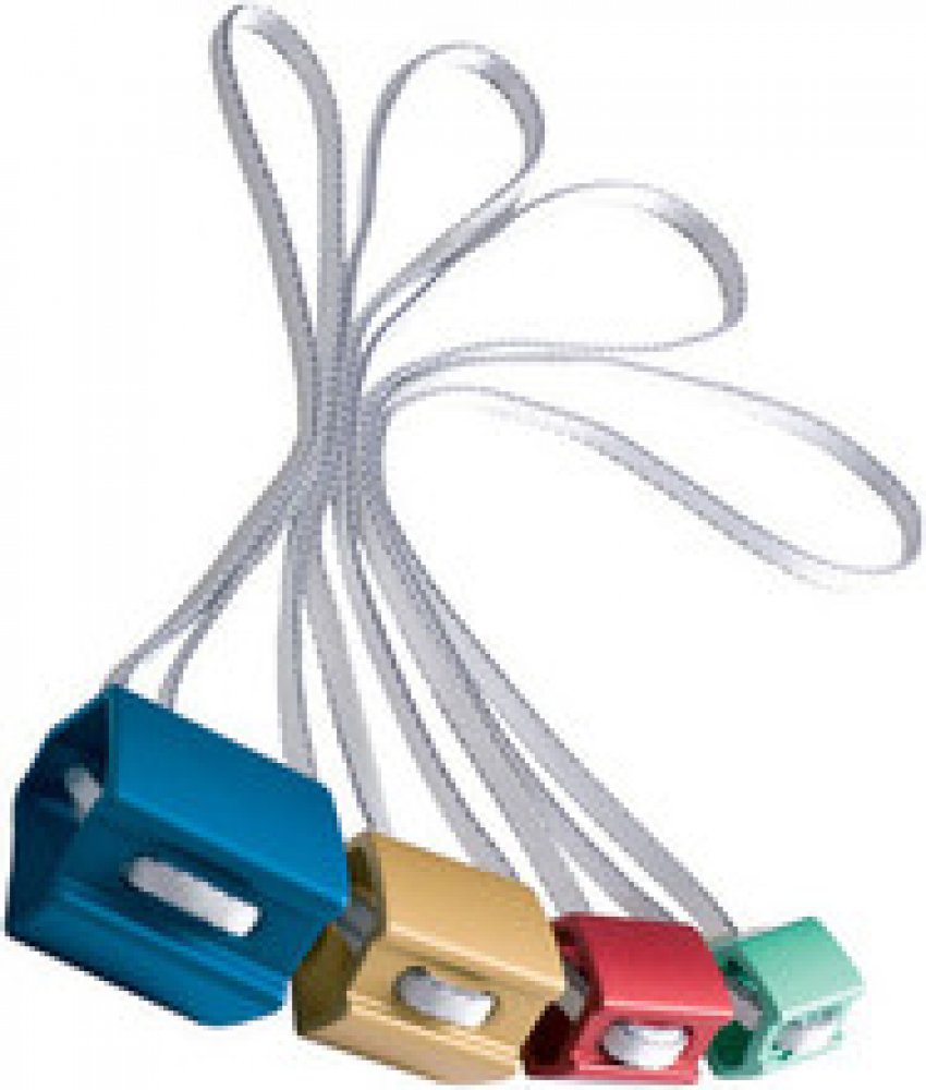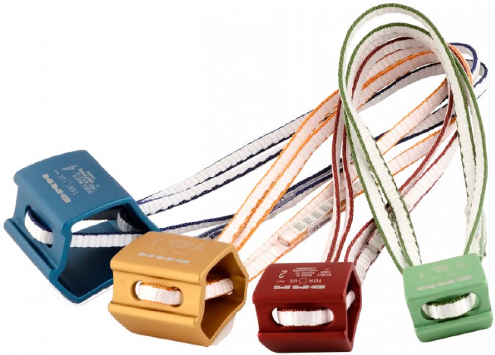 Torque Nuts jsou dostupné ve čtyřech velikostech. Velikosti jsou barevně odlišené (včetně barvy smyčky), a barvy se shodují s velikostmi DMM friendů.