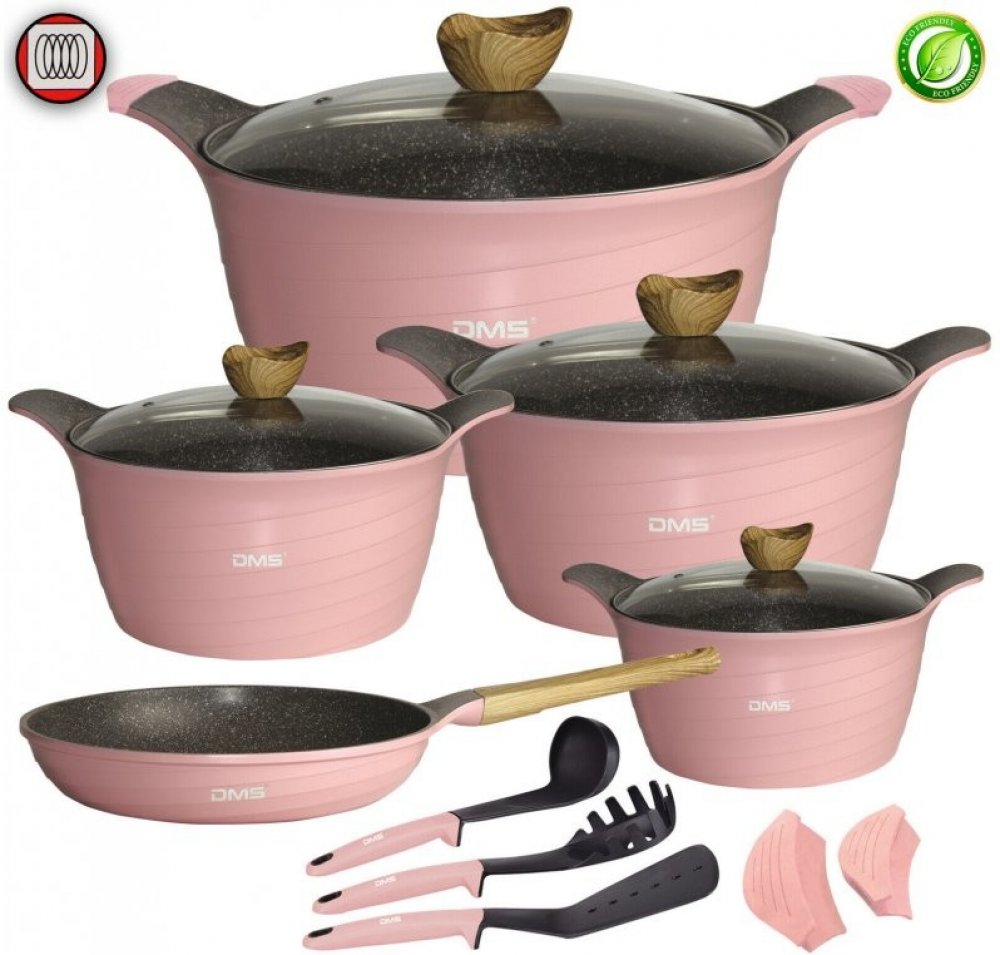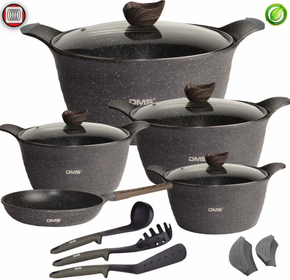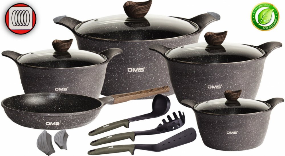 Hledáte hrnce a pánve z kvalitního materiálu, které vám budou v kuchyni při vaření sloužit léta ? Tak už dál hledat nemusíte. Máme tu pro vás sadu hrnců a pánví s mramorovým povrchem, který se vyznačuje vysokou úsporou energie. Jak je tohle možné ? Hrnce a pánve od značky DMS jsou totiž z kvalitního mramoru a hliníku, kdy tyto materiály dokáží velmi rychle vést teplo. Časy kdy jste u plotny stály hodiny a jídlo nebylo pořád uvařené jsou již pryč.