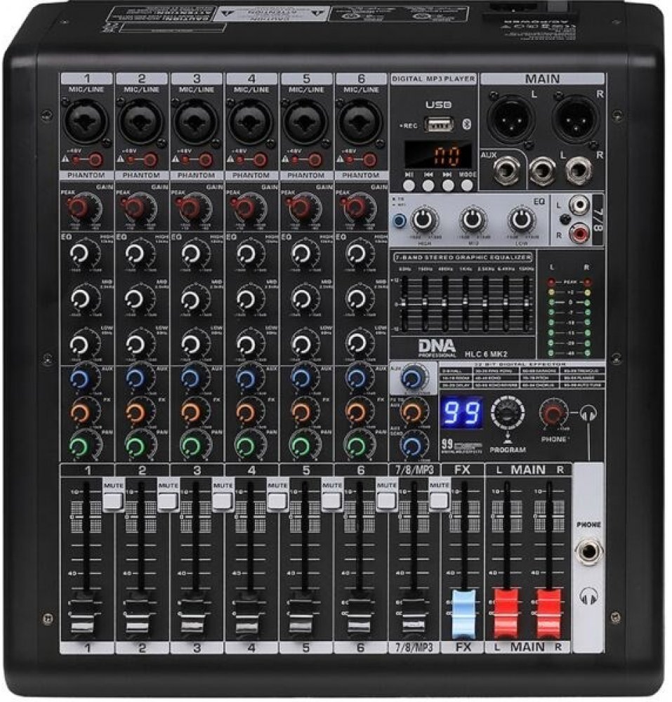 Všestranný 6-kanálový mixážní pult s Bluetooth konektivitouVylepšete svůj zážitek z mixování zvuku s tímto všestranným 6-kanálovým mixážním pultem, navrženým pro živá vystoupení, domácí nahrávání, podcasting a další. Jeho intuitivní rozložení, rozmanité možnosti připojení a vestavěné efekty z něj dělají výkonný nástroj pro začátečníky i zkušené zvukové profesionály.Klíčové vlastnosti:6 kanálů: Dos...