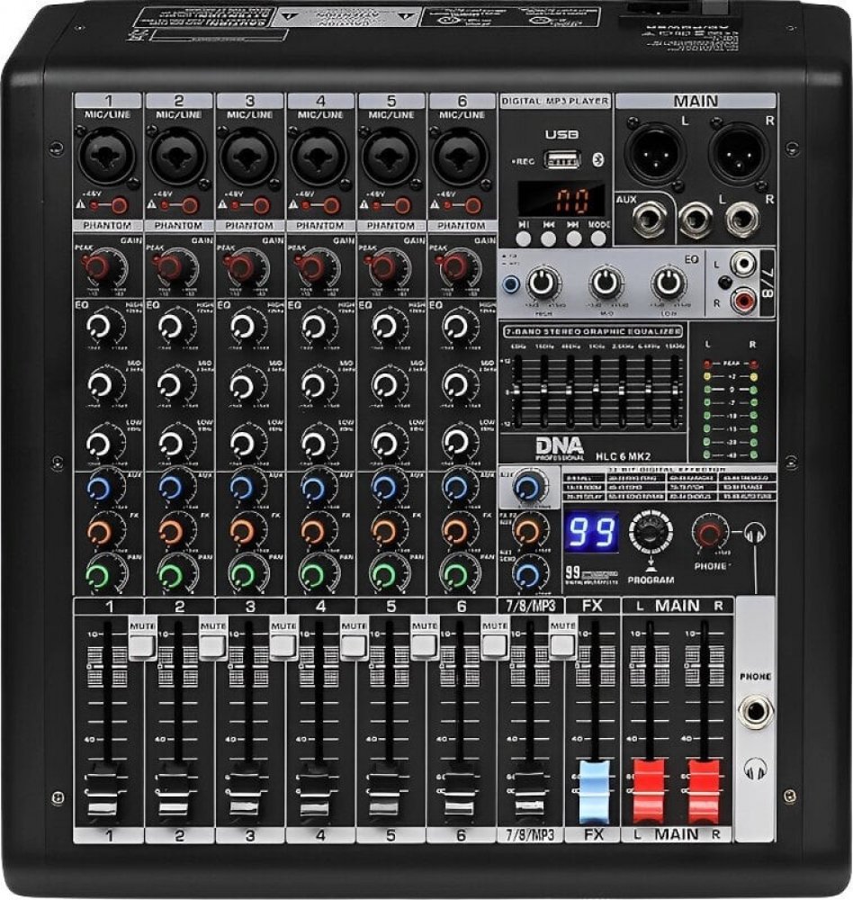 Všestranný 6-kanálový mixážní pult s Bluetooth konektivitouVylepšete svůj zážitek z mixování zvuku s tímto všestranným 6-kanálovým mixážním pultem, navrženým pro živá vystoupení, domácí nahrávání, podcasting a další. Jeho intuitivní rozložení, rozmanité možnosti připojení a vestavěné efekty z něj dělají výkonný nástroj pro začátečníky i zkušené zvukové profesionály.Klíčové vlastnosti:6 kanálů: Dostatečný počet vstupů pro mikrofony, nástroje a přehrávací zařízení.Kombinované XLR/Jack vstupy: Všestranné vstupy pro mikrofony i linkové zdroje.Fantomové napájení: Poskytuje napájení pro kondenzátorové mikrofony.Bluetooth konektivita: Bezdrátově streamujte zvuk ze smartphonu nebo tabletu.AUX IN & OUT: Připojte externí zvuková zařízení pro rozšířenou všestrannost.Výstup pro sluchátka: Monitorujte svůj mix s nezávislým ovládáním hlasitosti.XLR a Jack výstupy: Připojte k reproduktorům, zesilovačům nebo nahrávacím rozhraním.USB připojení: Nahrajte svůj mix přímo do počítače nebo přehrajte zvukové soubory.Vestavěné efekty: Vylepšete svůj zvuk různými efekty.Technické specifikace:Rozměry: 35,5 cm (hloubka) x 33 cm (šířka) x 8,7 cm (výška)Hmotnost: 2,95 kgObsah balení:Mixážní pultNapájecí kabelManuálOdemkněte svou kreativitu a dosáhněte profesionální kvality mixování zvuku s tímto mixážním pultem bohatým na funkce a uživatelsky přívětivým.