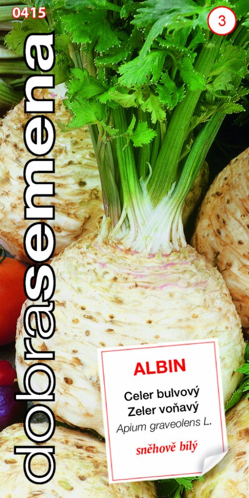 ALBIN – celer ceněný pro čistě bílou barvu dužniny bez antokyanu. Dužnina nehnědne ani nefialoví ani při konzervování nebo mražení.