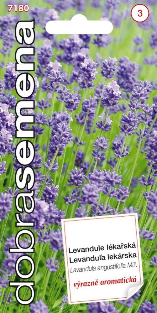Podrobnosti o produktu 0071802 Aromatická a dekorativní, rozložitě rostoucí trvalka se sytě modrými květy.Levandule lékařská / Lavandula angustifolia Mill. Aromatická a dekorativní, rozložitě rostoucí trvalka se sytě modrými květy. Vyžaduje slunné stanoviště a propustnou půdu s dostatkem vápníku. Voňavé květy se suší a využívají do vonných směsí i na čaje s uklidňujícím účinkem.Sortiment řady „Dobrá semena“ je vybrán tak, aby doplňoval a rozšiřoval nabídku semen o odrůdy, které zcela jistě stojí za vyzkoušení. Hlavním posláním této řady je, aby to, co z těchto „Dobrých semen“ vyroste, bylo opravdu DOBRÉ.